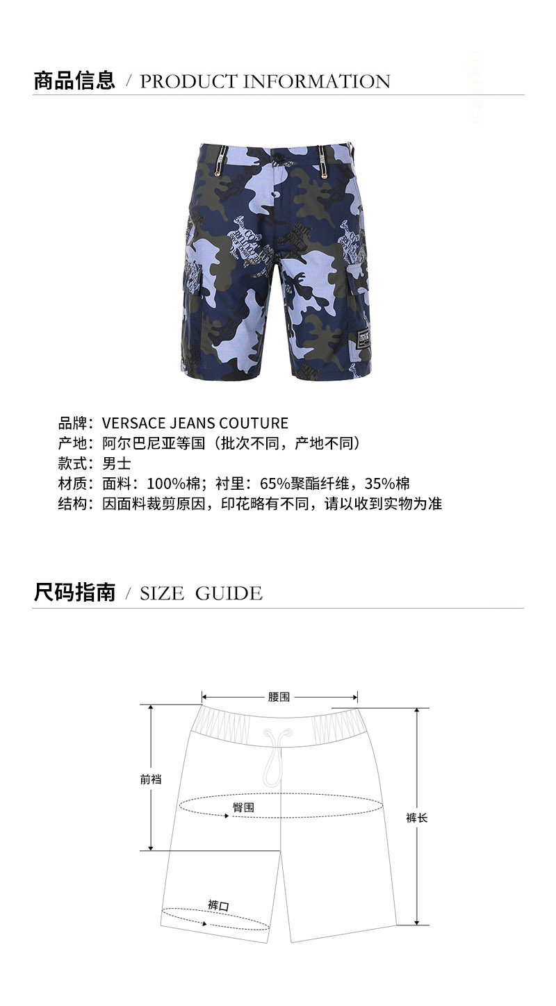 VERSACE JEANS COUTURE/VERSACE JEANS COUTURE 范思哲 2021款 男士短裤 男士棉质休闲短裤 A4GWA109 SR485