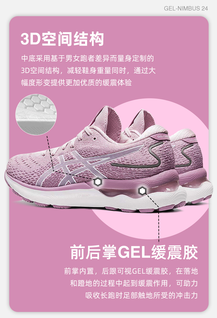 ASICS亚瑟士NIMBUS 24马拉松跑鞋女子N24冬缓震运动跑步鞋
