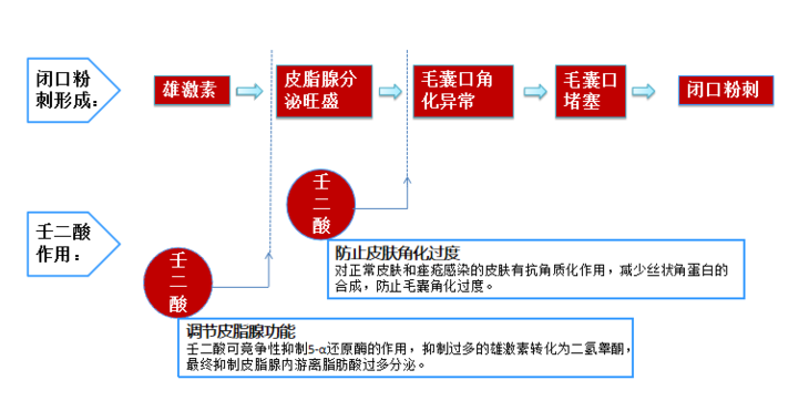 防止毛囊堵塞 减少丝状角蛋白的合成,防止毛囊角化破坏细胞线粒体呼吸,抑制角朊细胞增生