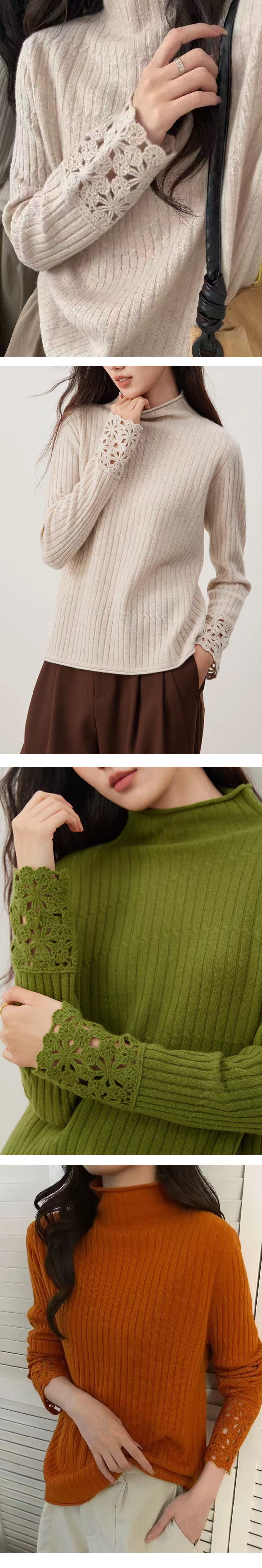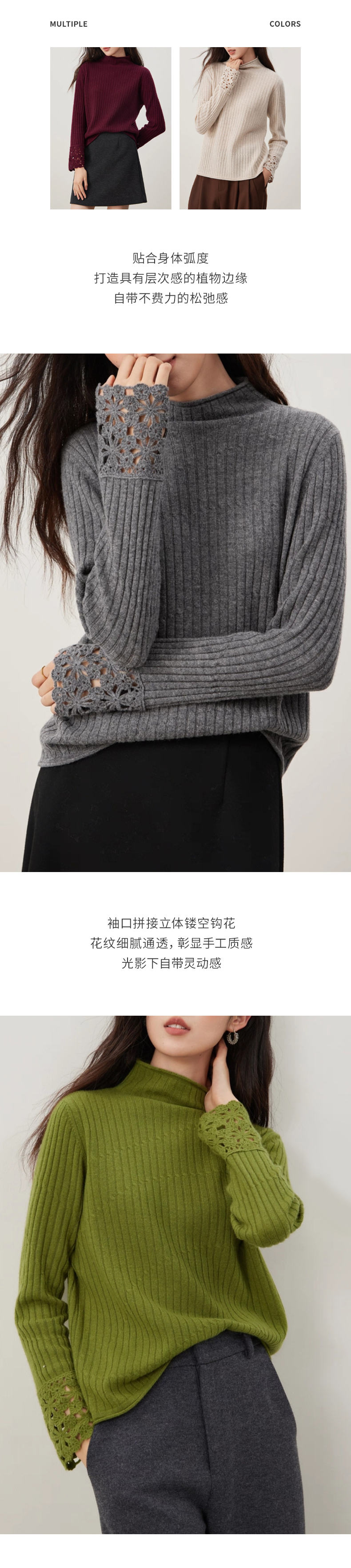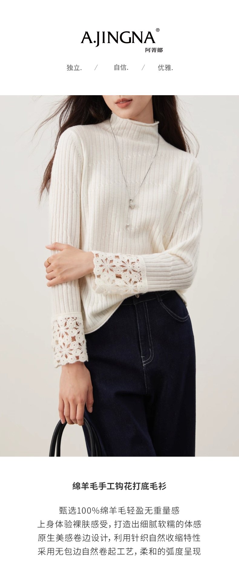 【镂空袖口】阿菁娜冬季新款手工钩花羊毛衫云感肌理自然卷边设计立体镂空袖口F30D302012
