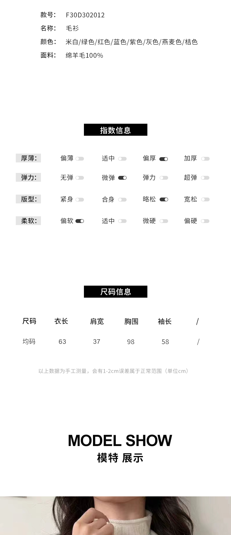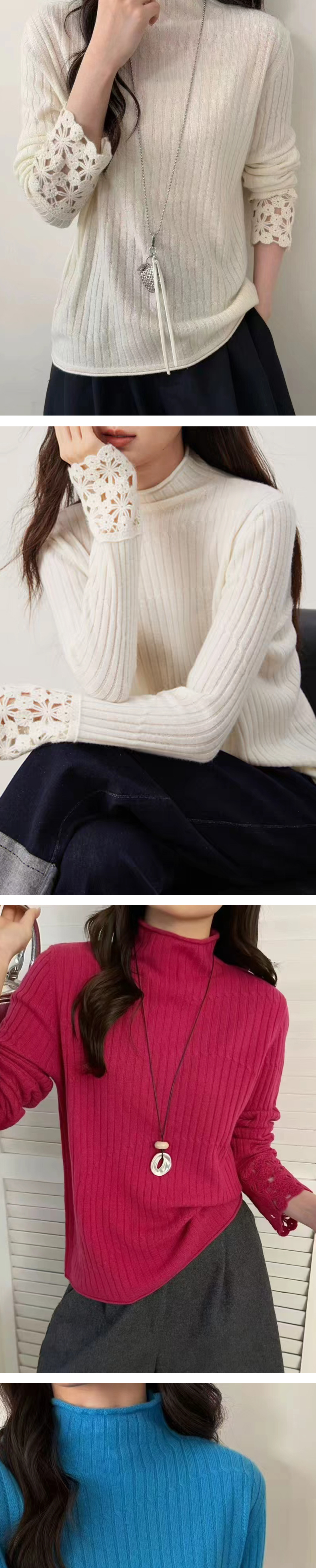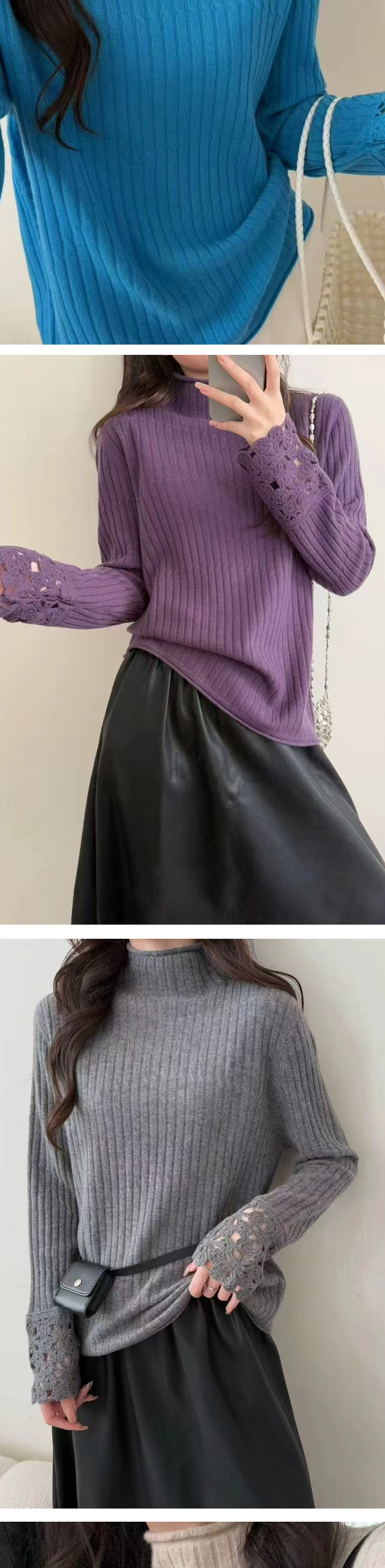 【镂空袖口】阿菁娜冬季新款手工钩花羊毛衫云感肌理自然卷边设计立体镂空袖口F30D302012