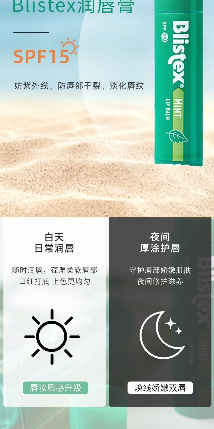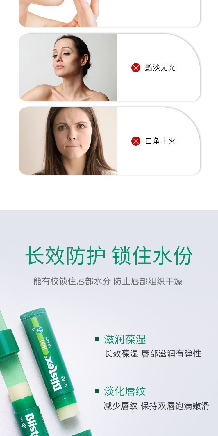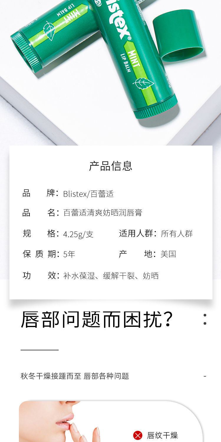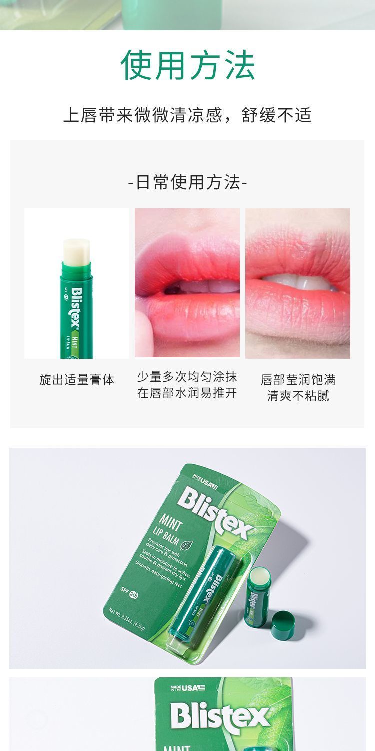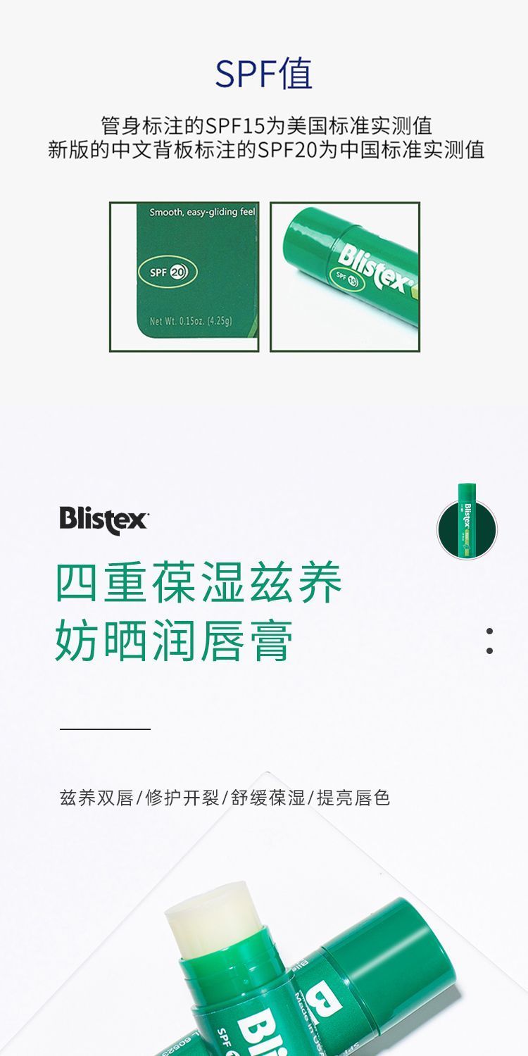 【爆款超低价预售 急单慎拍】美国BLISTEX百蕾适薄荷小绿管碧唇清爽润唇膏保湿修护SPF20防晒值