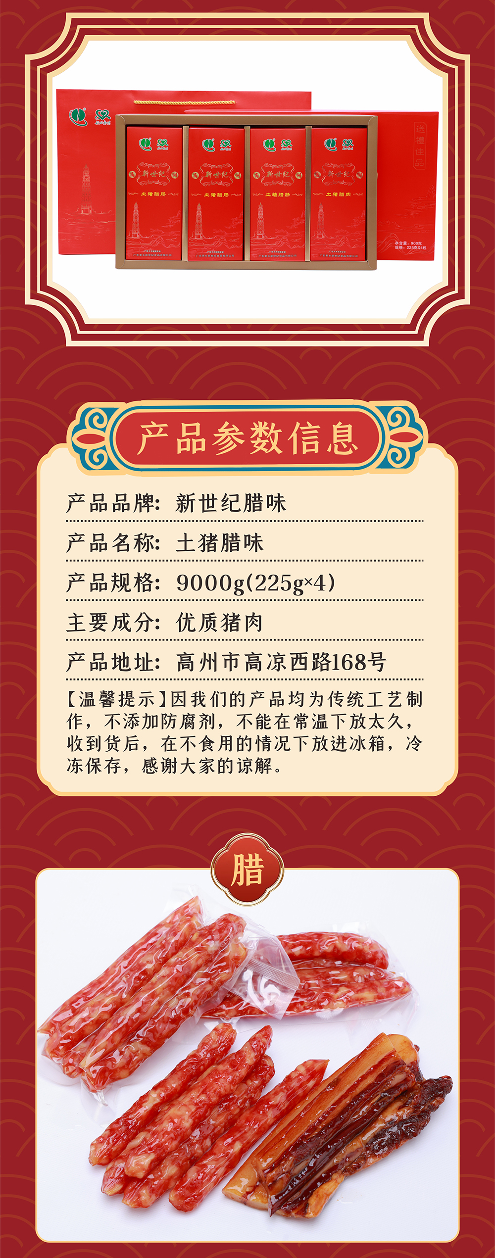 新世纪土猪生晒腊味900g礼盒装