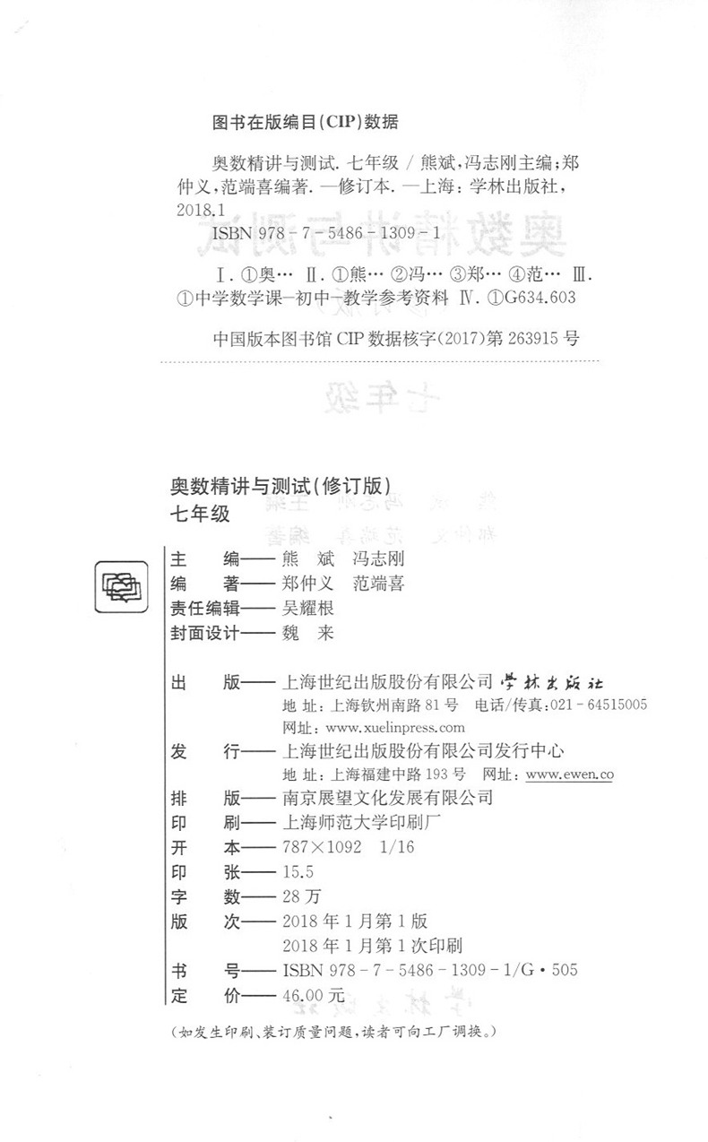 修订版 奥数精讲与测试 7年级/七年级 初中七年级奥数/初中七年级奥数教材 7年级奥数练习册 学林出版社 从入门到精通