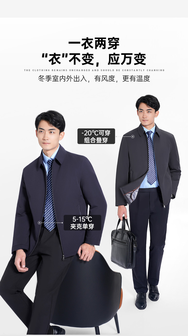 【实付满399送保温杯】【三合一鹅绒夹克】防风保暖行政夹克可拆卸内胆羽绒服外套