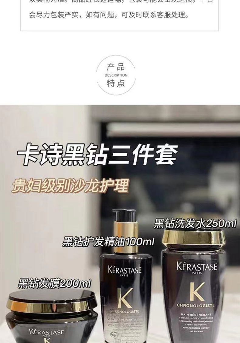 【年终限时大促】【保税仓直发·全球购】卡诗黑钻钥源系列三件套(洗发水250ml发膜200ml护发精油100ml)配礼袋