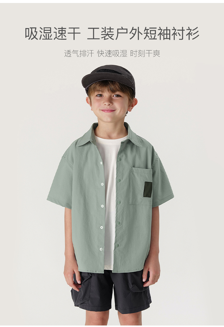 【超轻速干】马克珍妮男童工装户外Polo短袖衬衫夏装新款240526