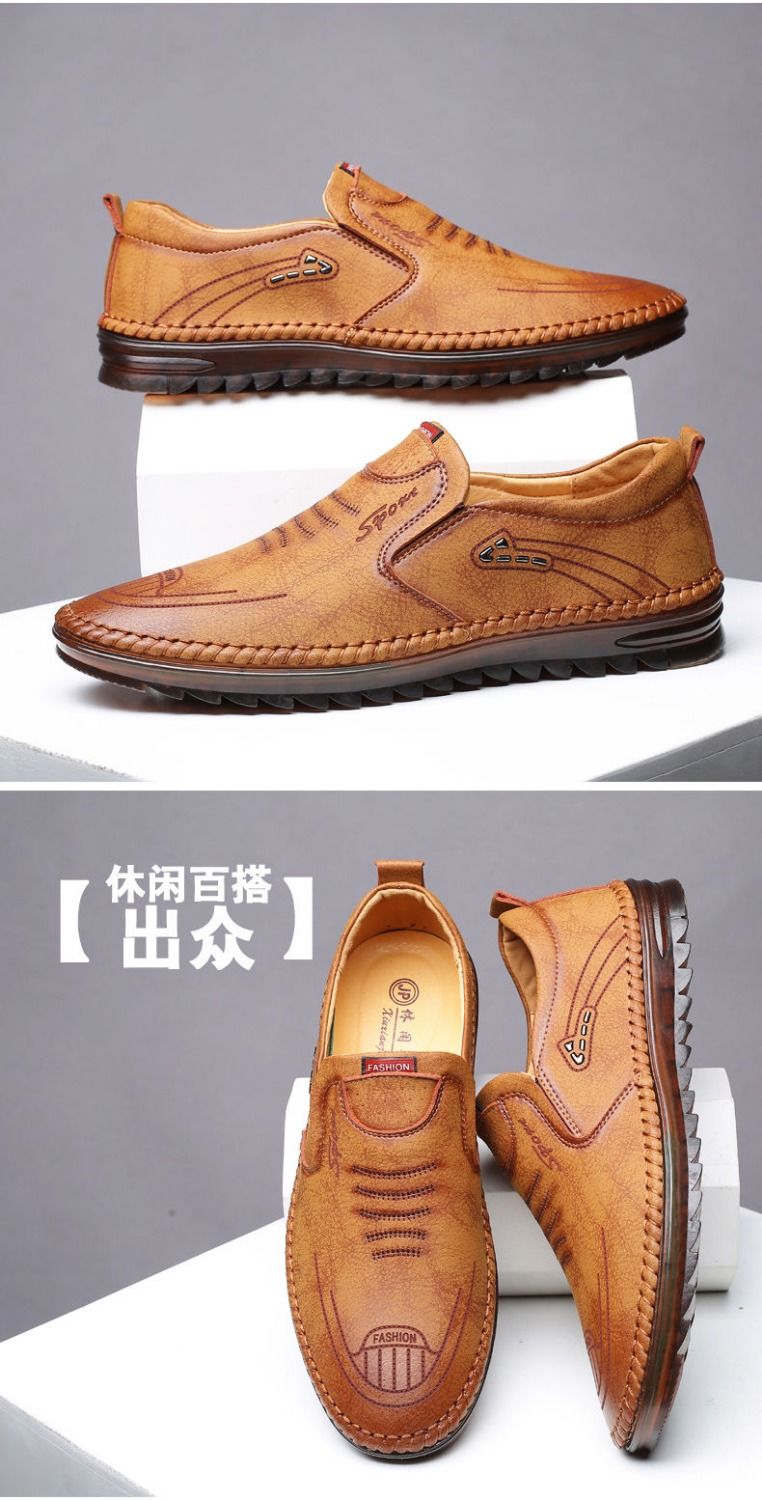 新款透气皮鞋男中老年人软皮软底防滑上线休闲男鞋中年 爸爸鞋