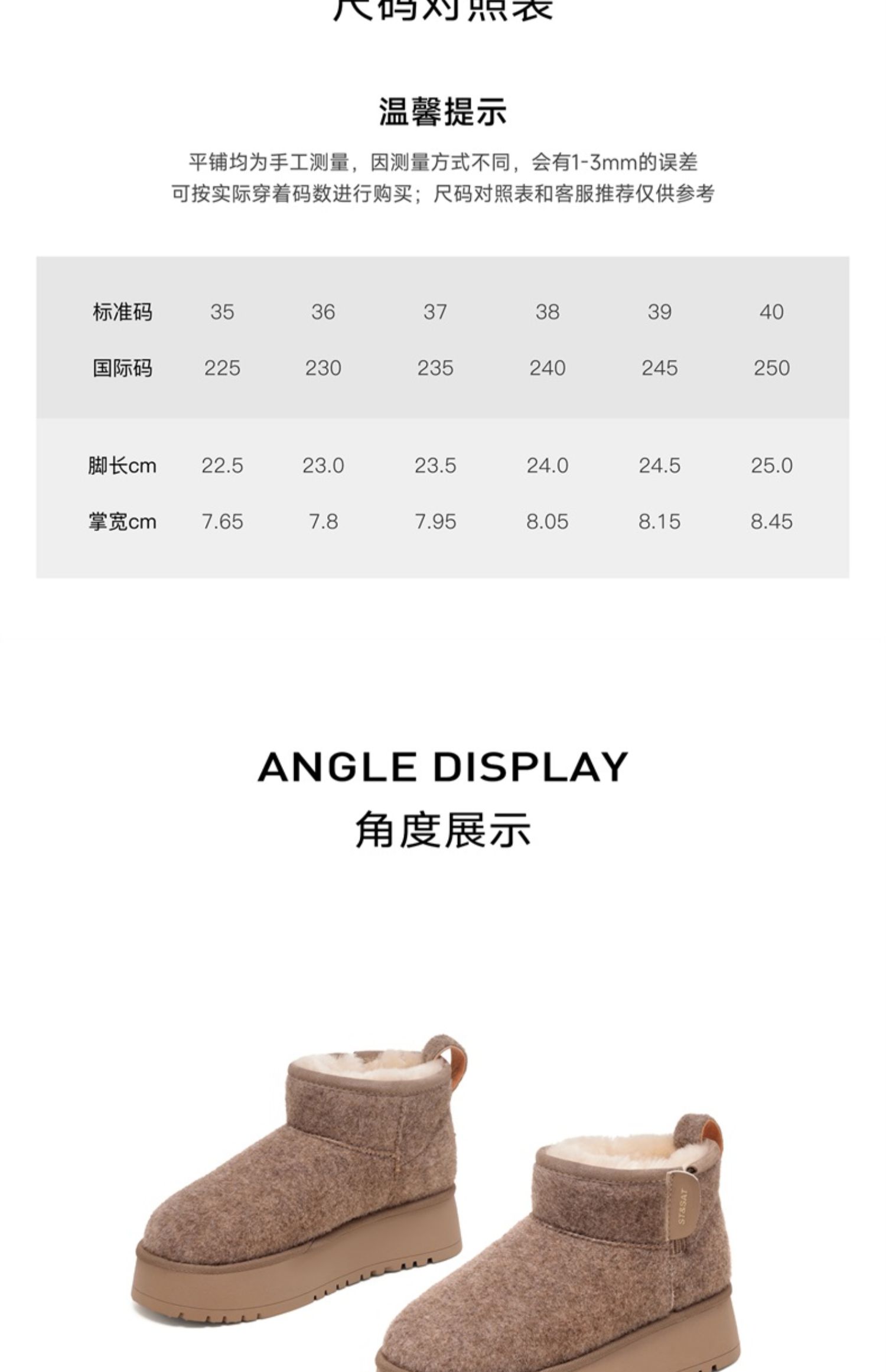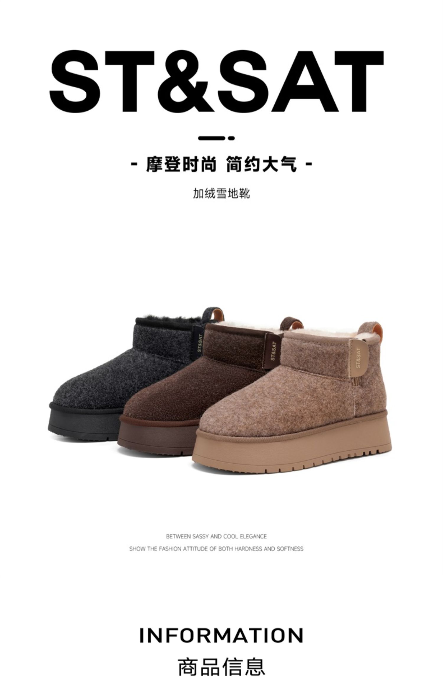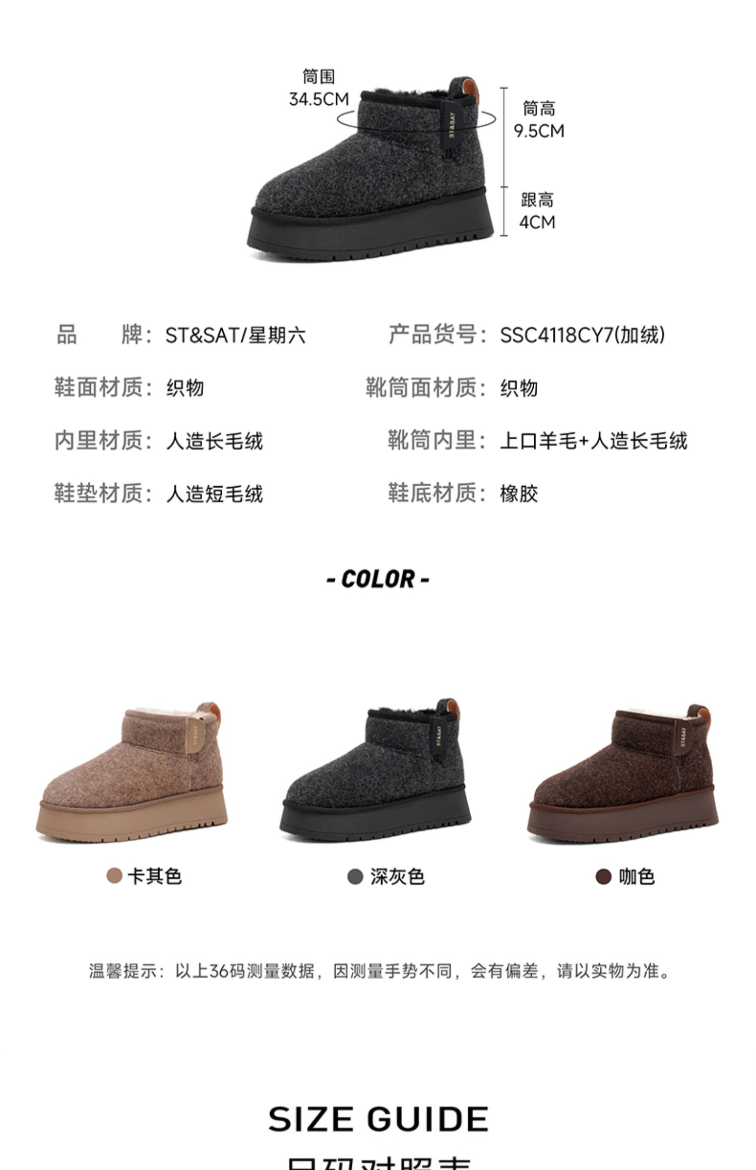 星期六简约百搭短筒加绒厚底雪地靴SSC4118CY7