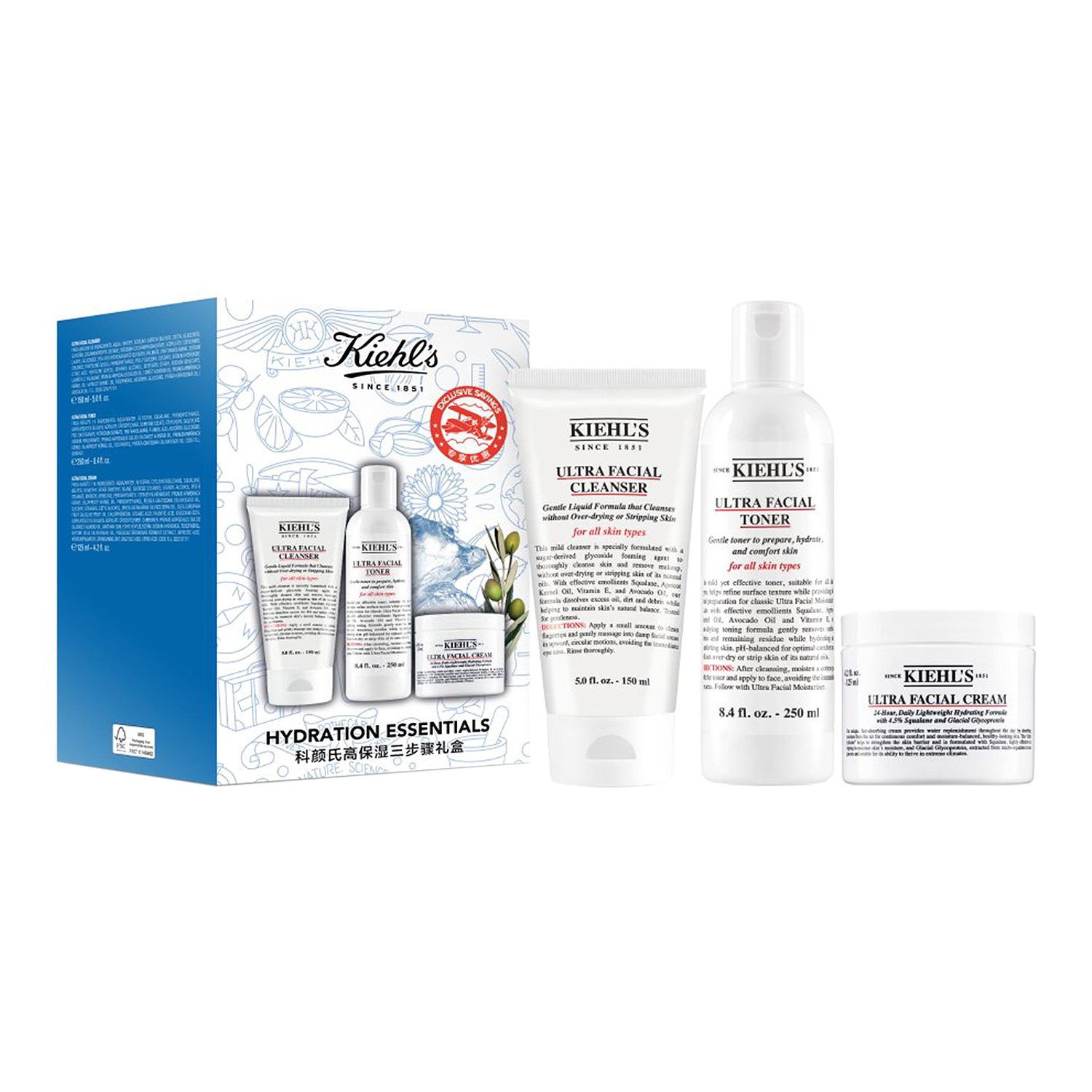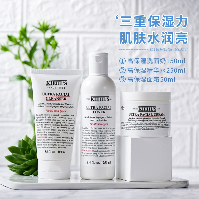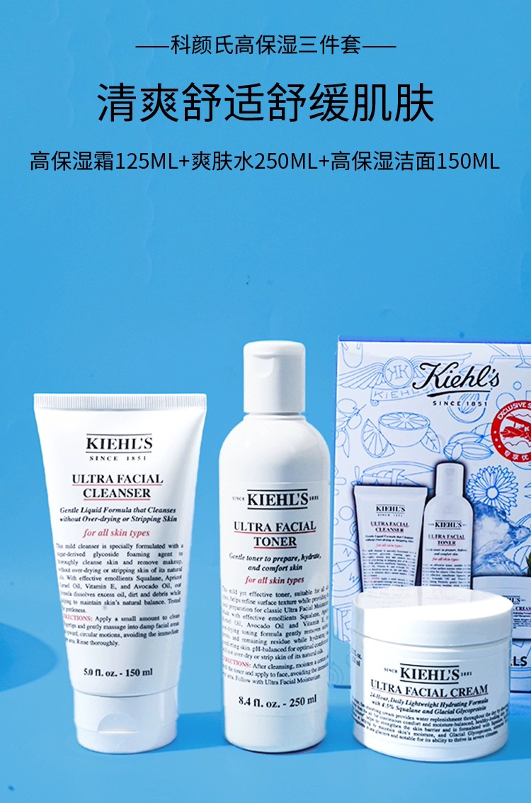 美国 Kiehl's科颜氏 高保湿3件套 套盒(洁面150ml+高保湿水250ml+高保湿面霜125ml)