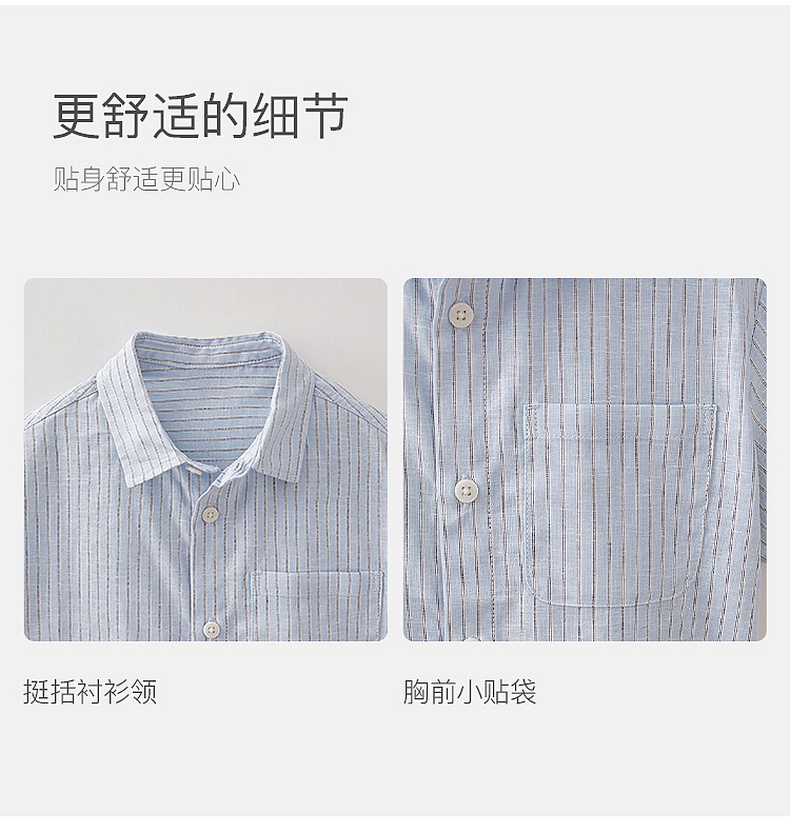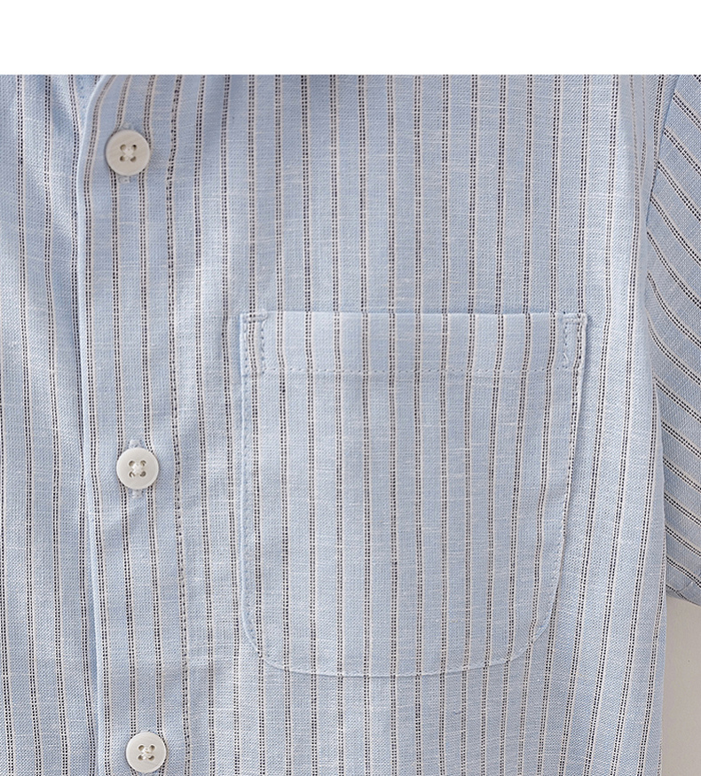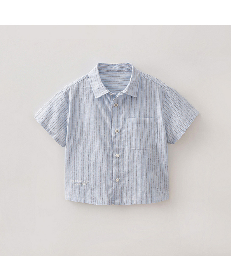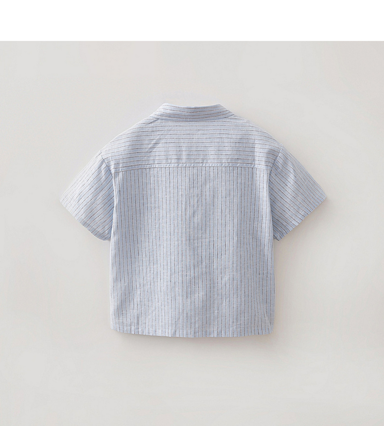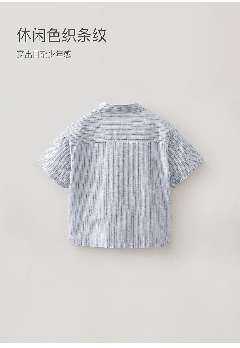马克珍妮松弛条纹男童棉麻短袖衬衫2026年夏装新款560526