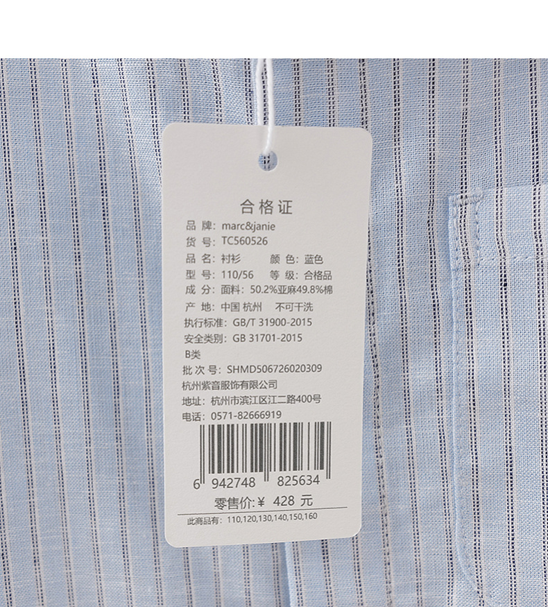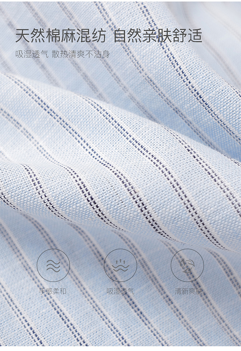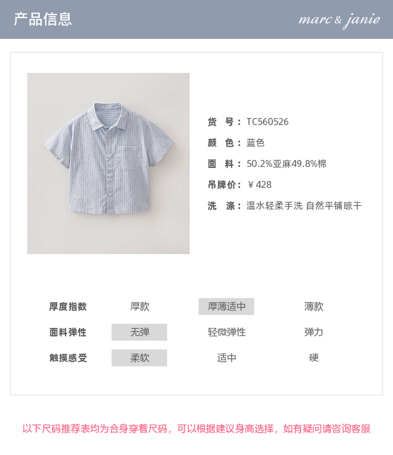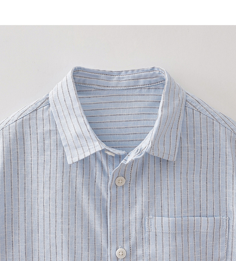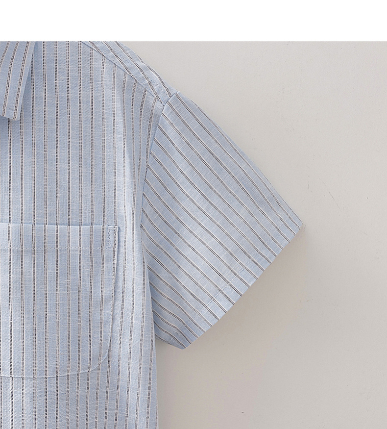 马克珍妮松弛条纹男童棉麻短袖衬衫2026年夏装新款560526