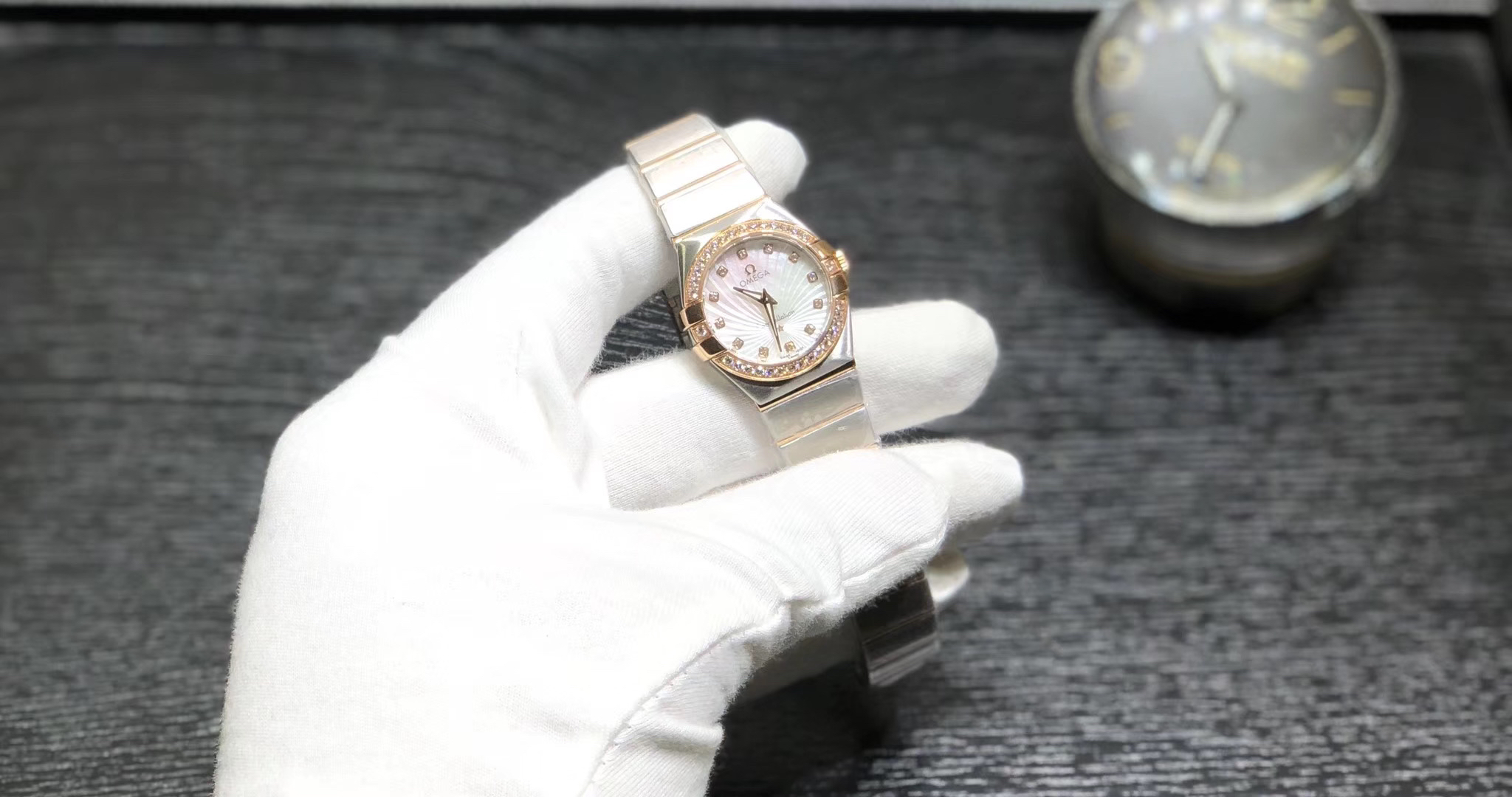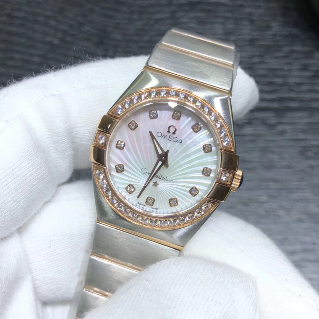 【SSS】欧米茄星座系列石英腕表 ,每个零件都是原装开模,27mm*10mm,1仿表史上首次搭载原装正品欧米茄1376专用机芯(用的正品的机芯)!2石英星座所有散件均可同原版互用 3表带尾粒logo采用纯18k金,**;4表壳把管采用内六角旋入式把管,防水性能更佳;5壳的耳位经过线切割慢走丝加工而出,慢工出细活;5面玻璃电镀air双面无色增透膜,通透十足;6字面纹路.logo.五角星及钻的镶嵌手法按原版来,细节讲究!给它一个专柜,它就是正品。