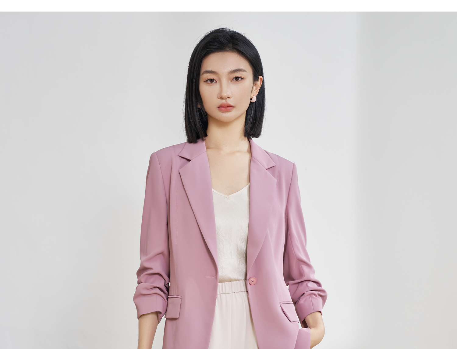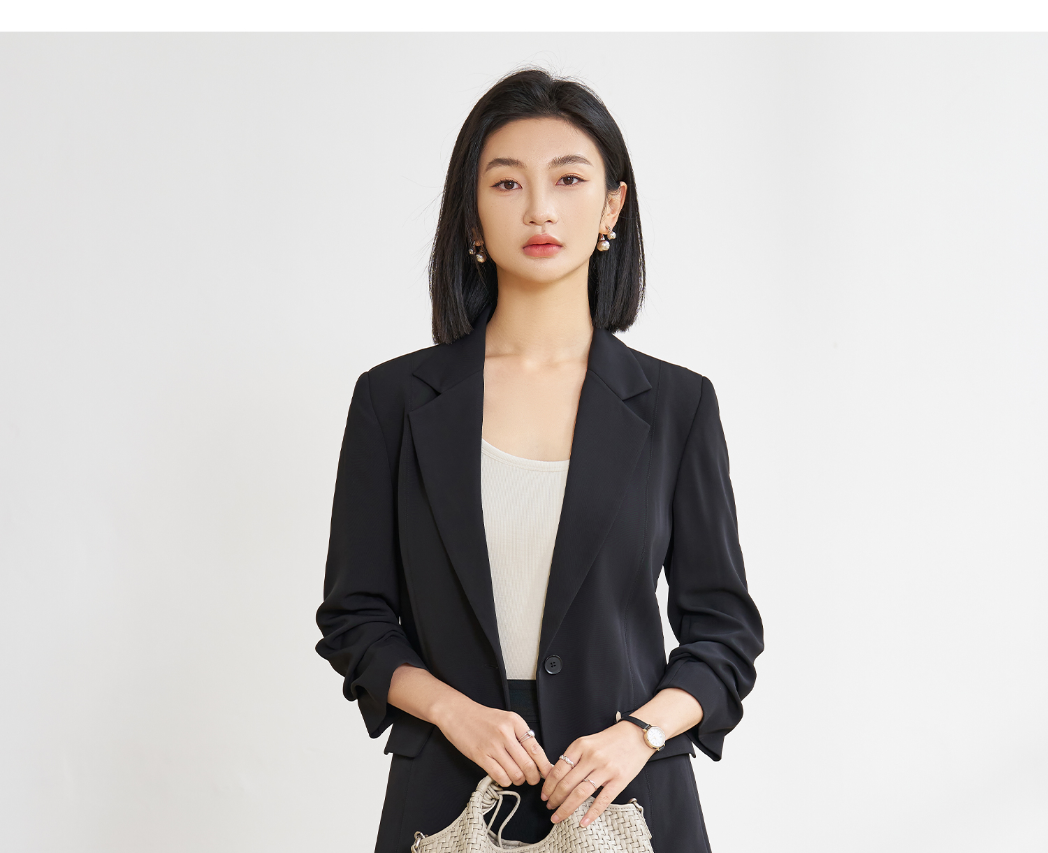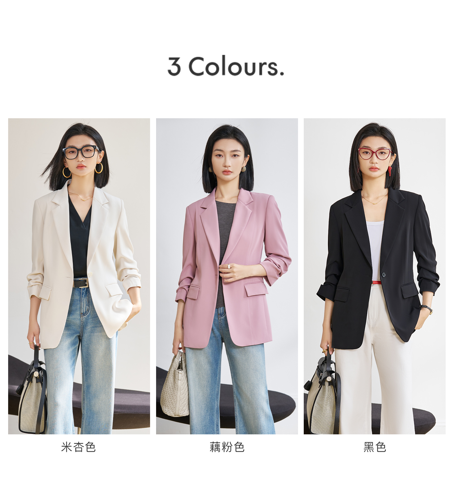 通勤平驳领西装外套 简约通勤纯色西装职业正装七分袖短外套女6055