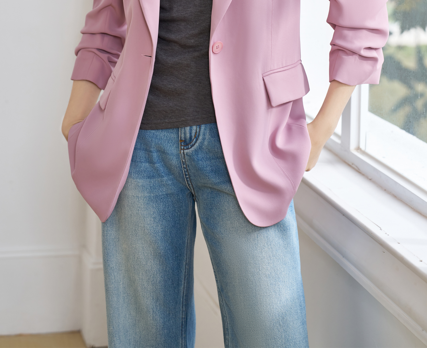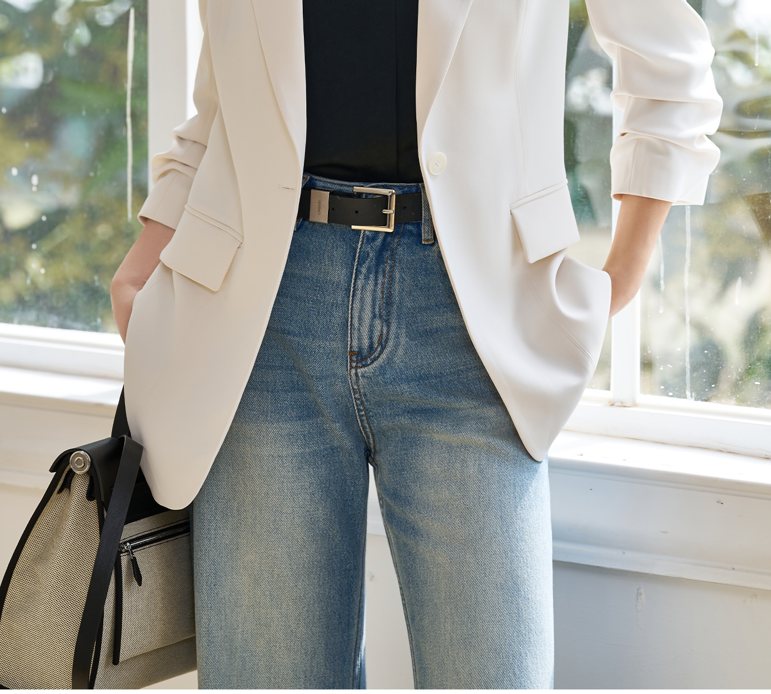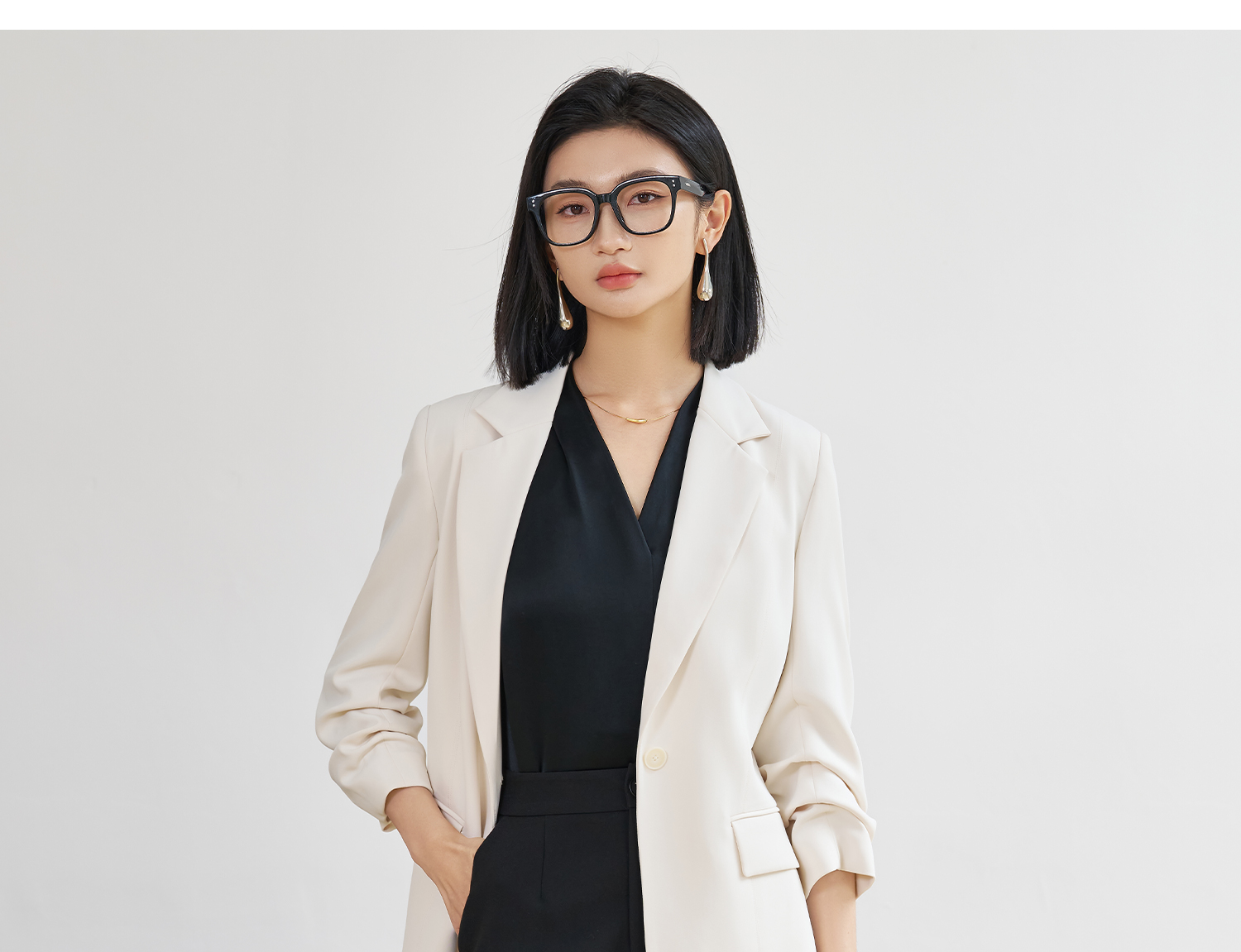 通勤平驳领西装外套 简约通勤纯色西装职业正装七分袖短外套女6055