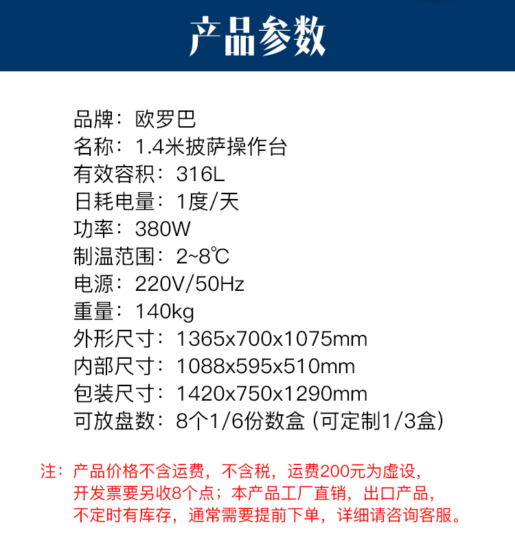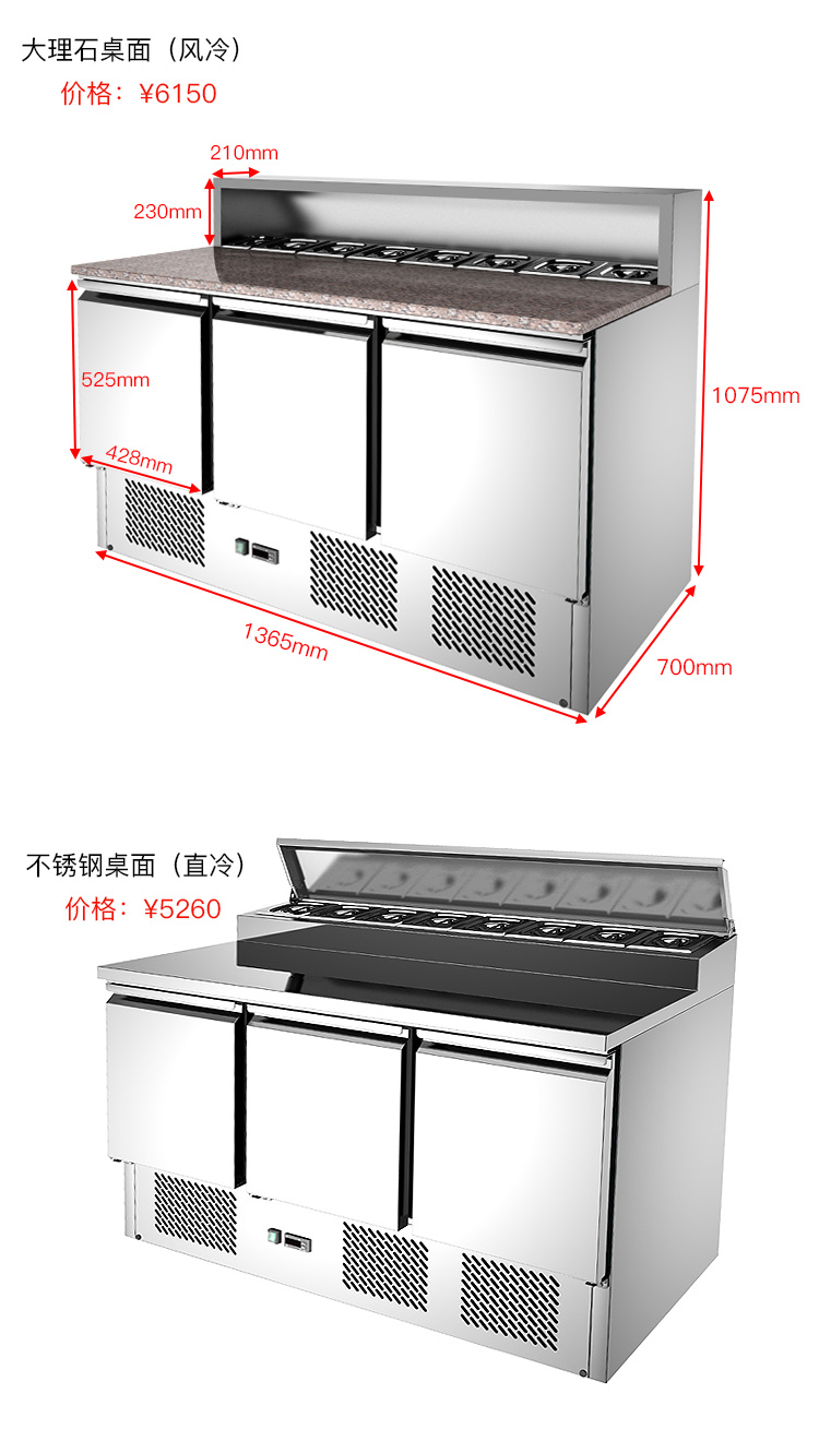 SB-1.4欧罗巴出口风冷1米4披萨操作台比萨冷藏柜304不锈钢保鲜冷藏柜SB-1.4
