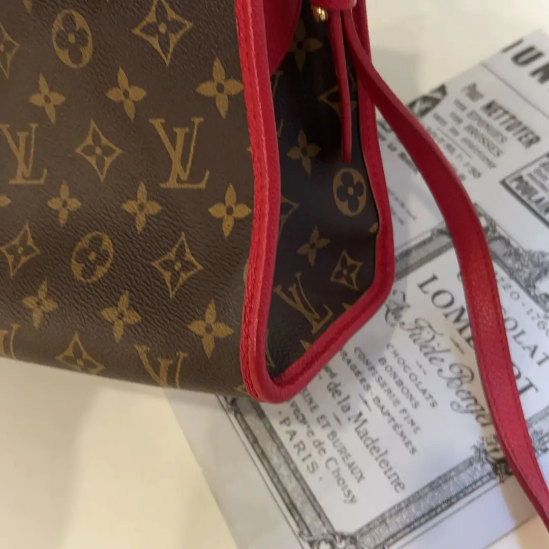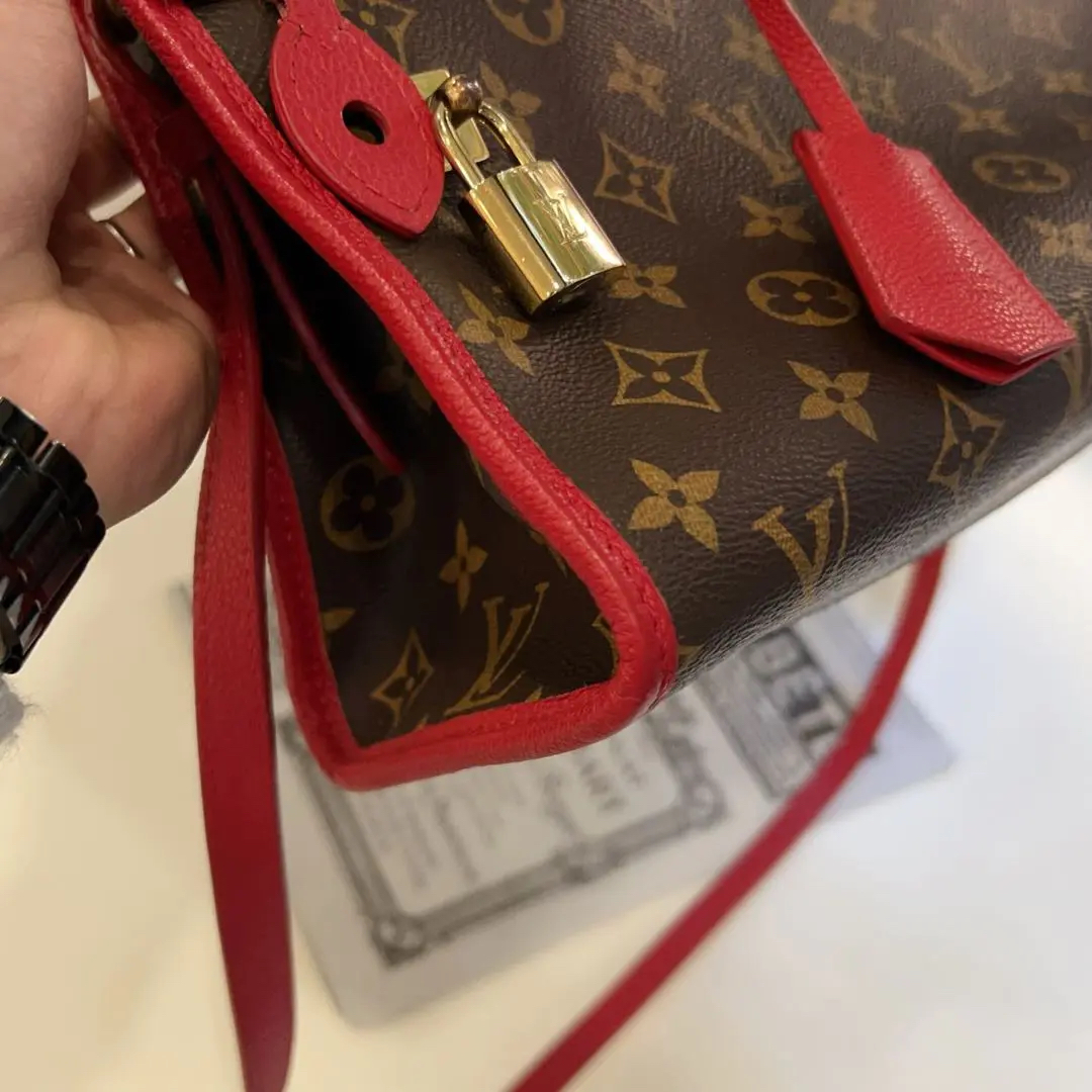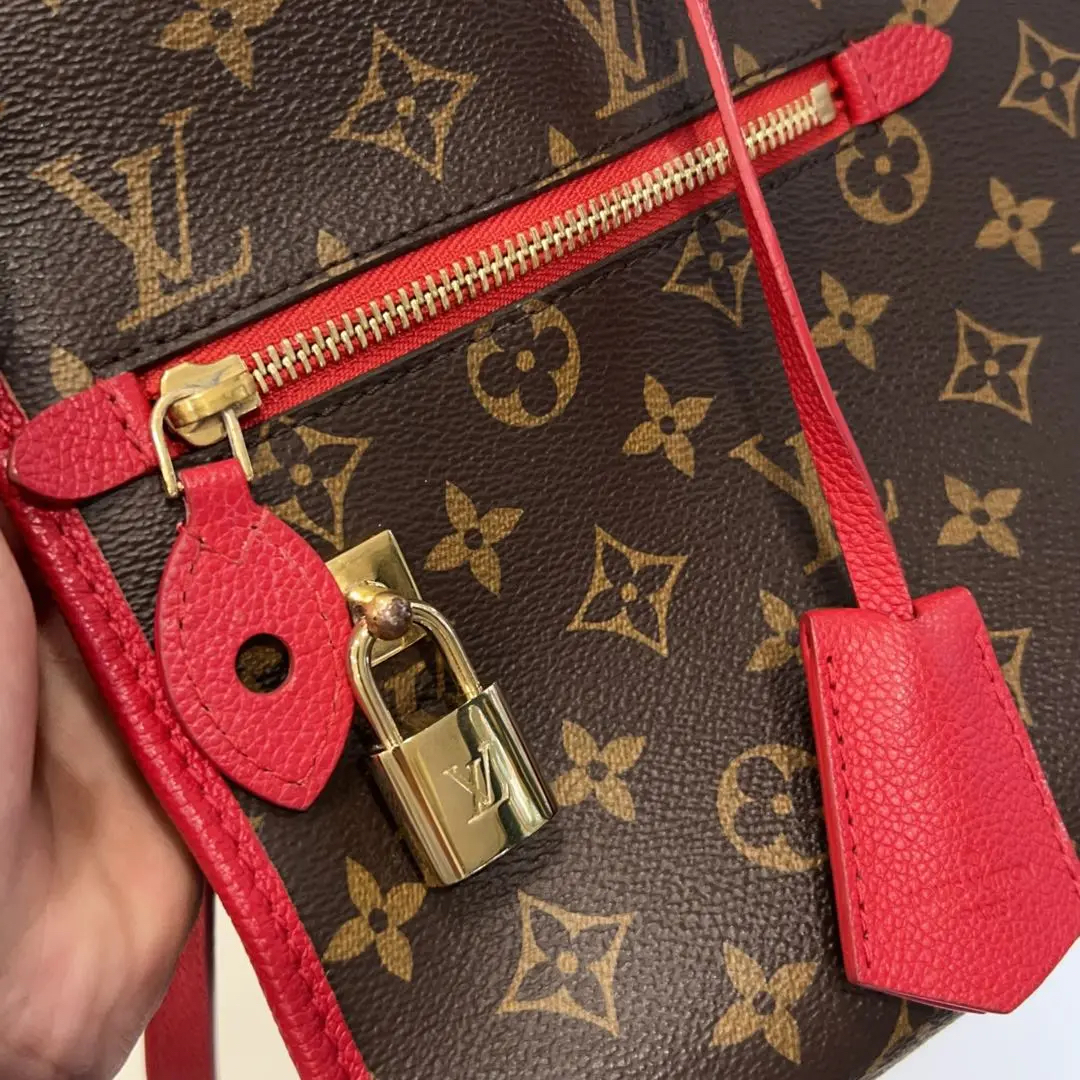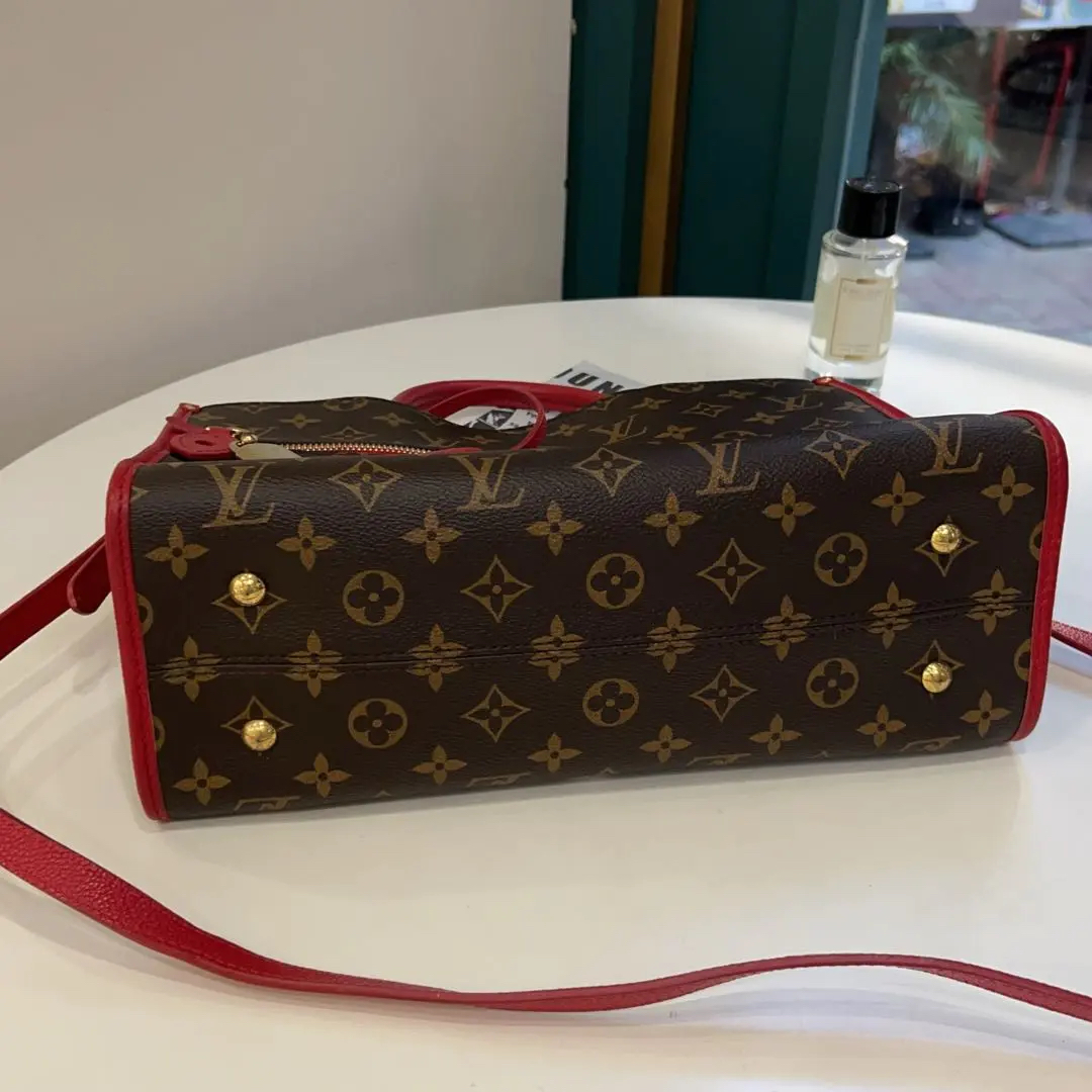 【商品详情】正品二手 LV Popincourt PM 红色 老花 手提斜挎包💼 93新 31*19 配件:锁 钥匙 肩带。包口老花干纹通病。红红火火