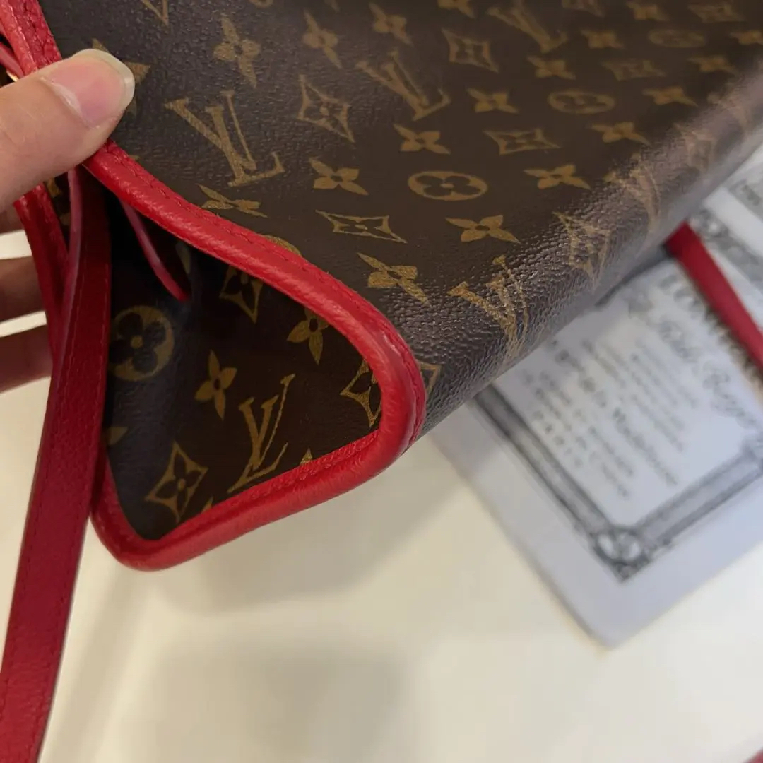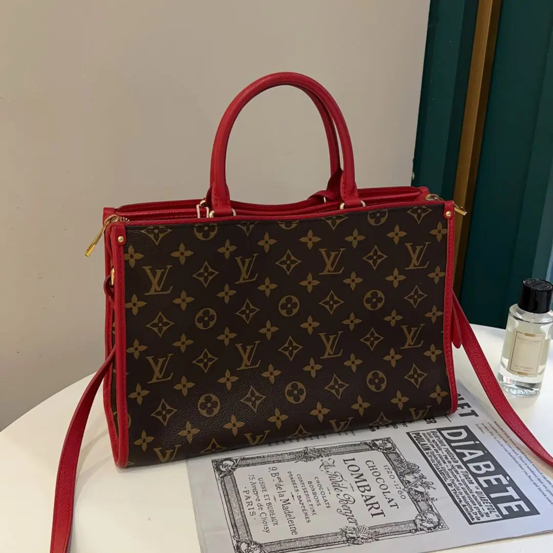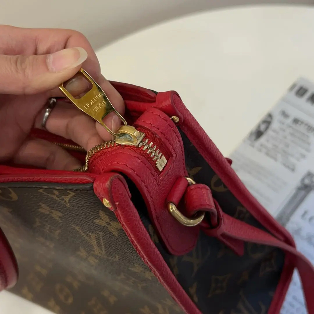 【商品详情】正品二手 LV Popincourt PM 红色 老花 手提斜挎包💼 93新 31*19 配件:锁 钥匙 肩带。包口老花干纹通病。红红火火