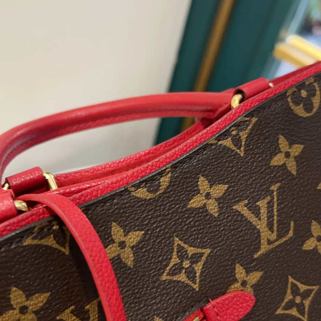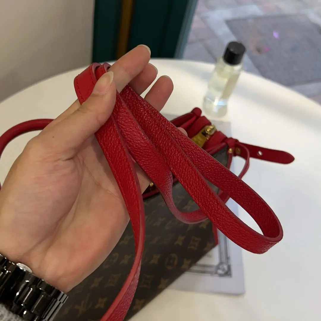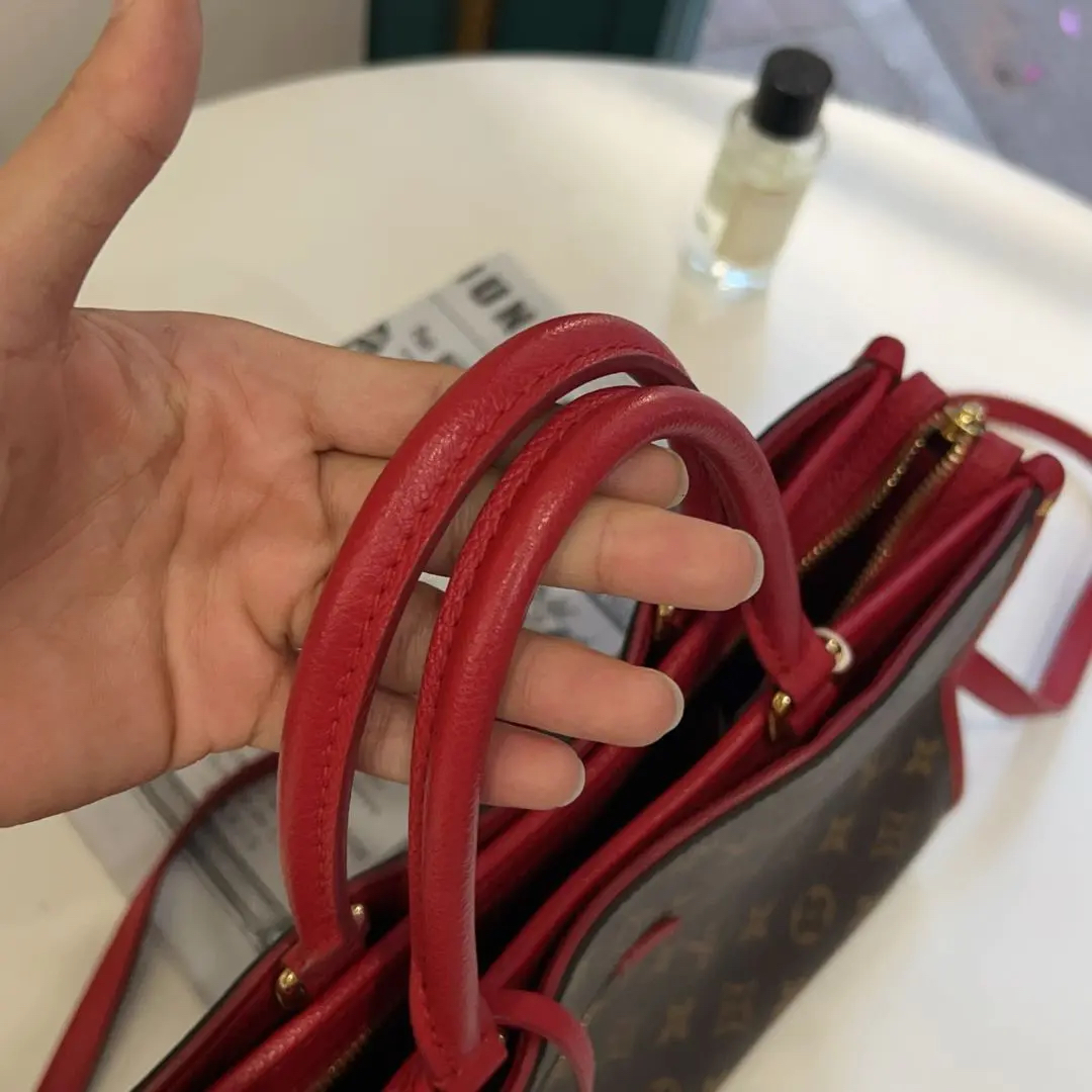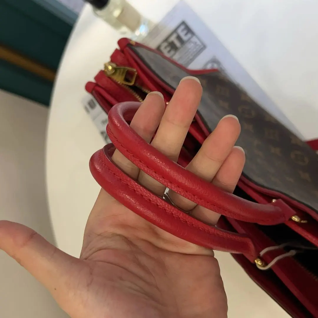 【商品详情】正品二手 LV Popincourt PM 红色 老花 手提斜挎包💼 93新 31*19 配件:锁 钥匙 肩带。包口老花干纹通病。红红火火