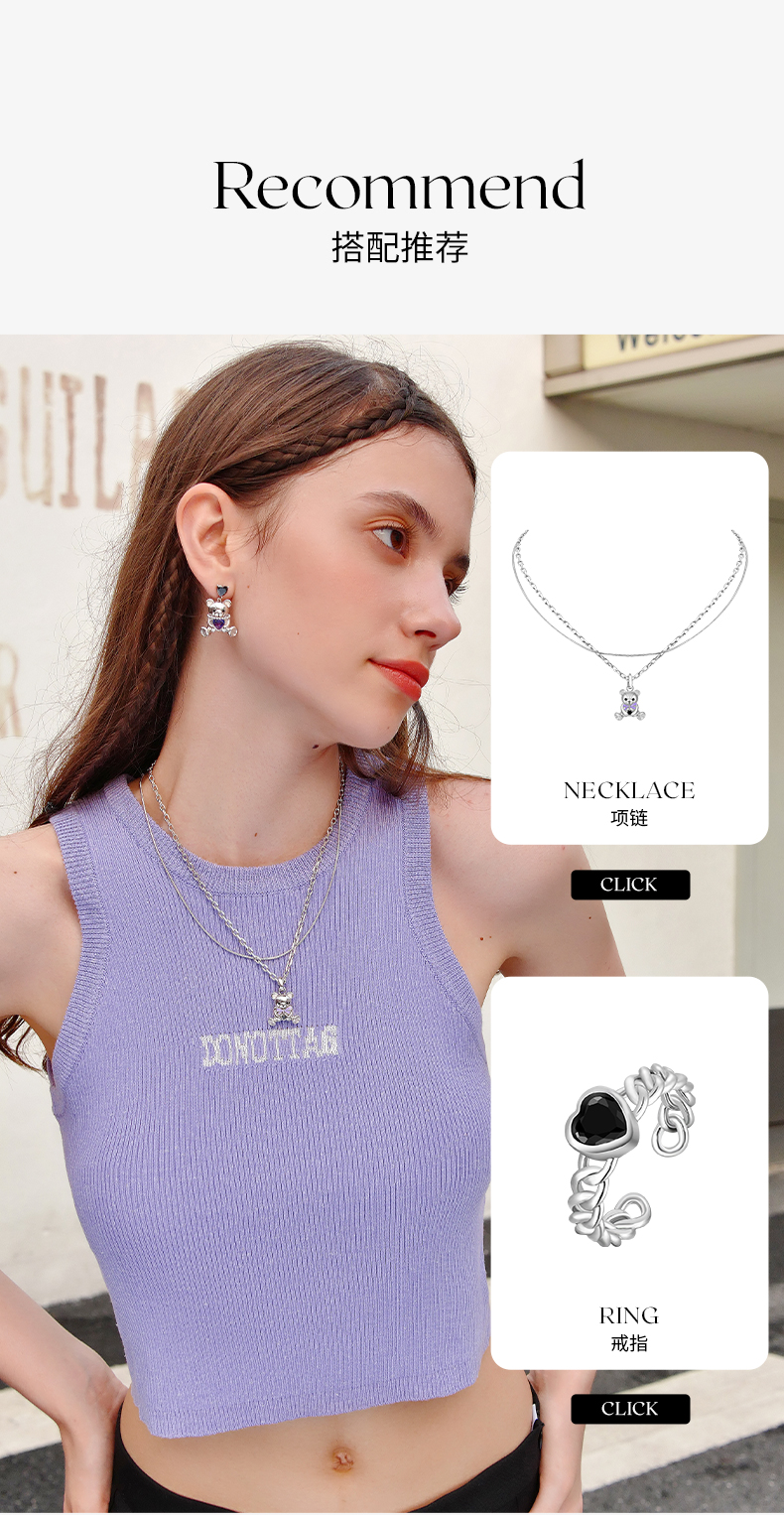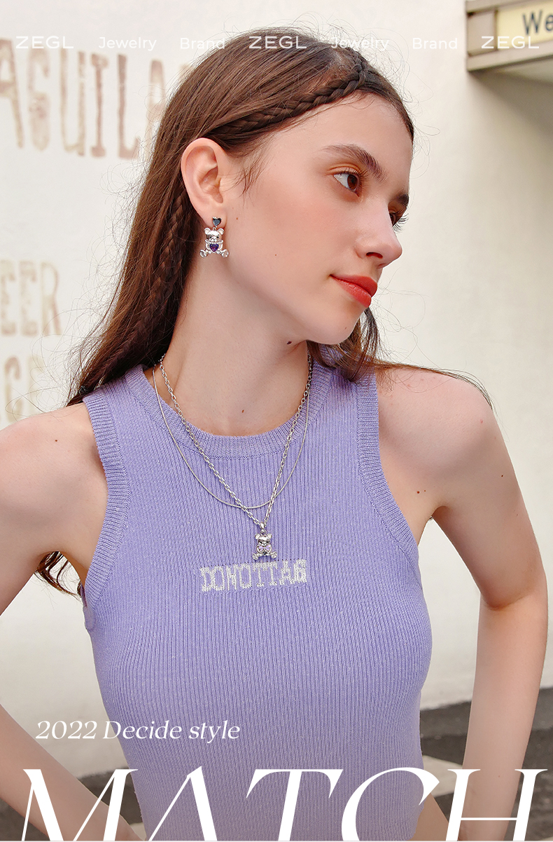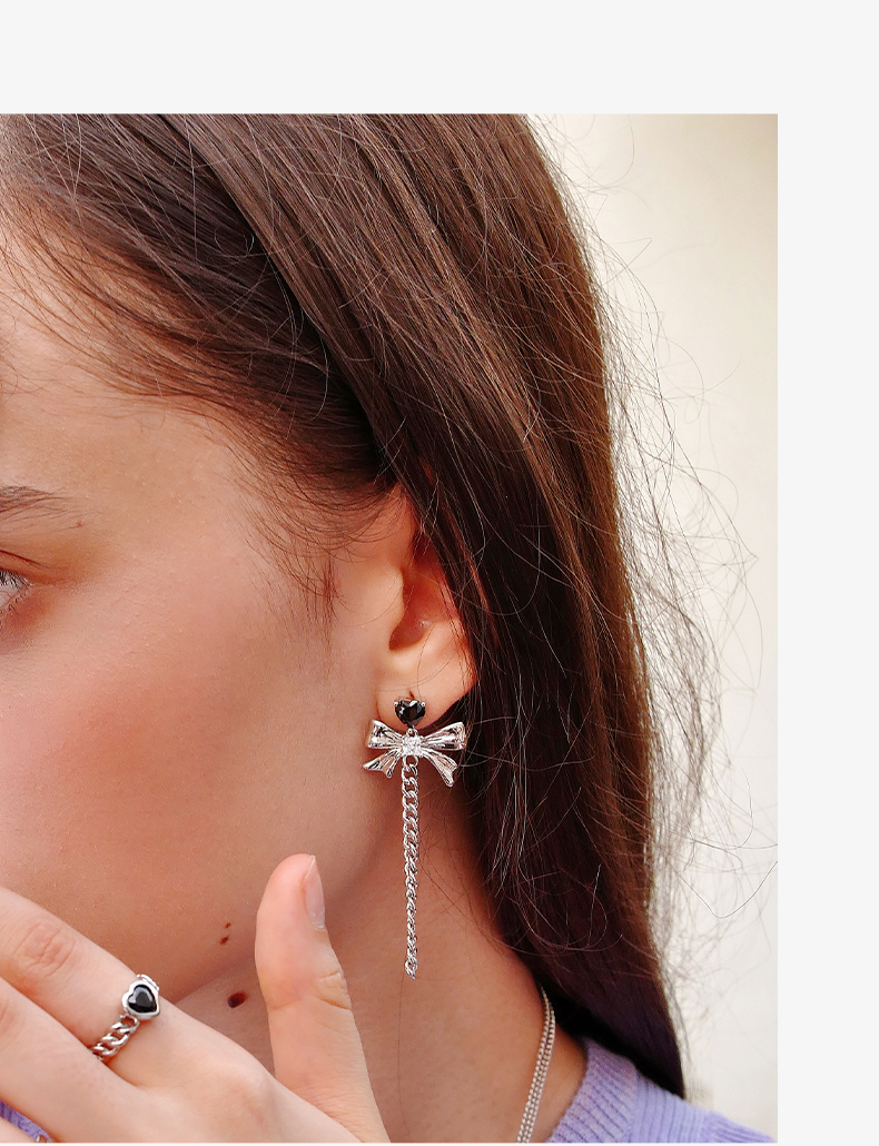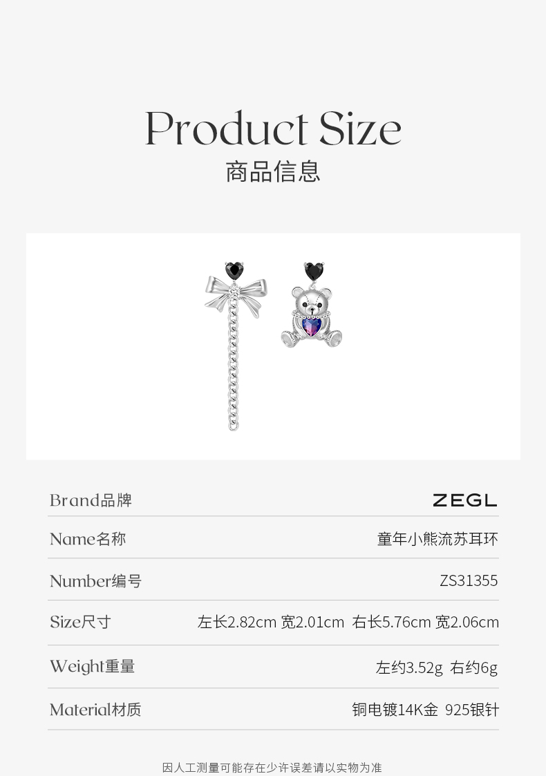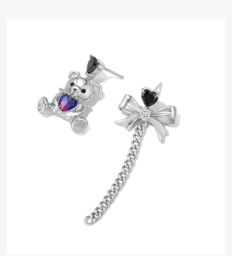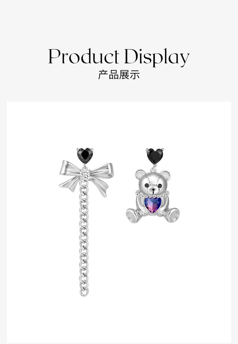 ZEGL设计师幻梦小熊系列蝴蝶结流苏耳环女长款耳钉银针不对称耳饰