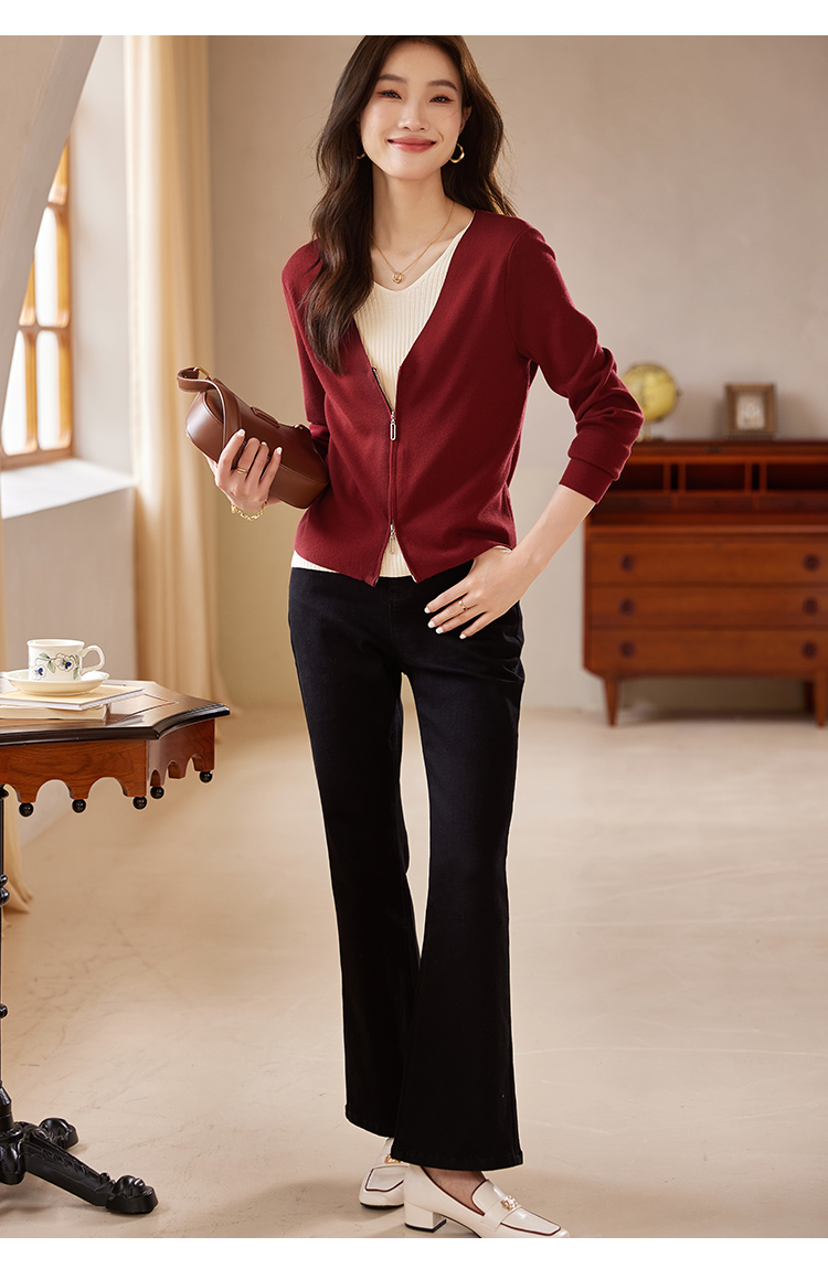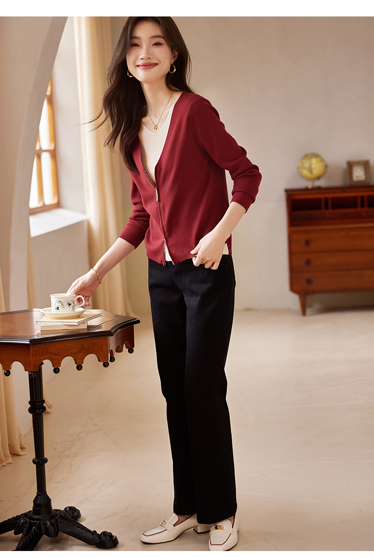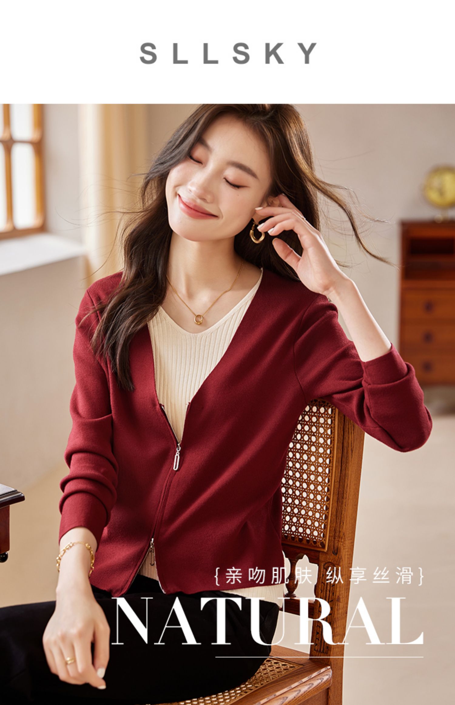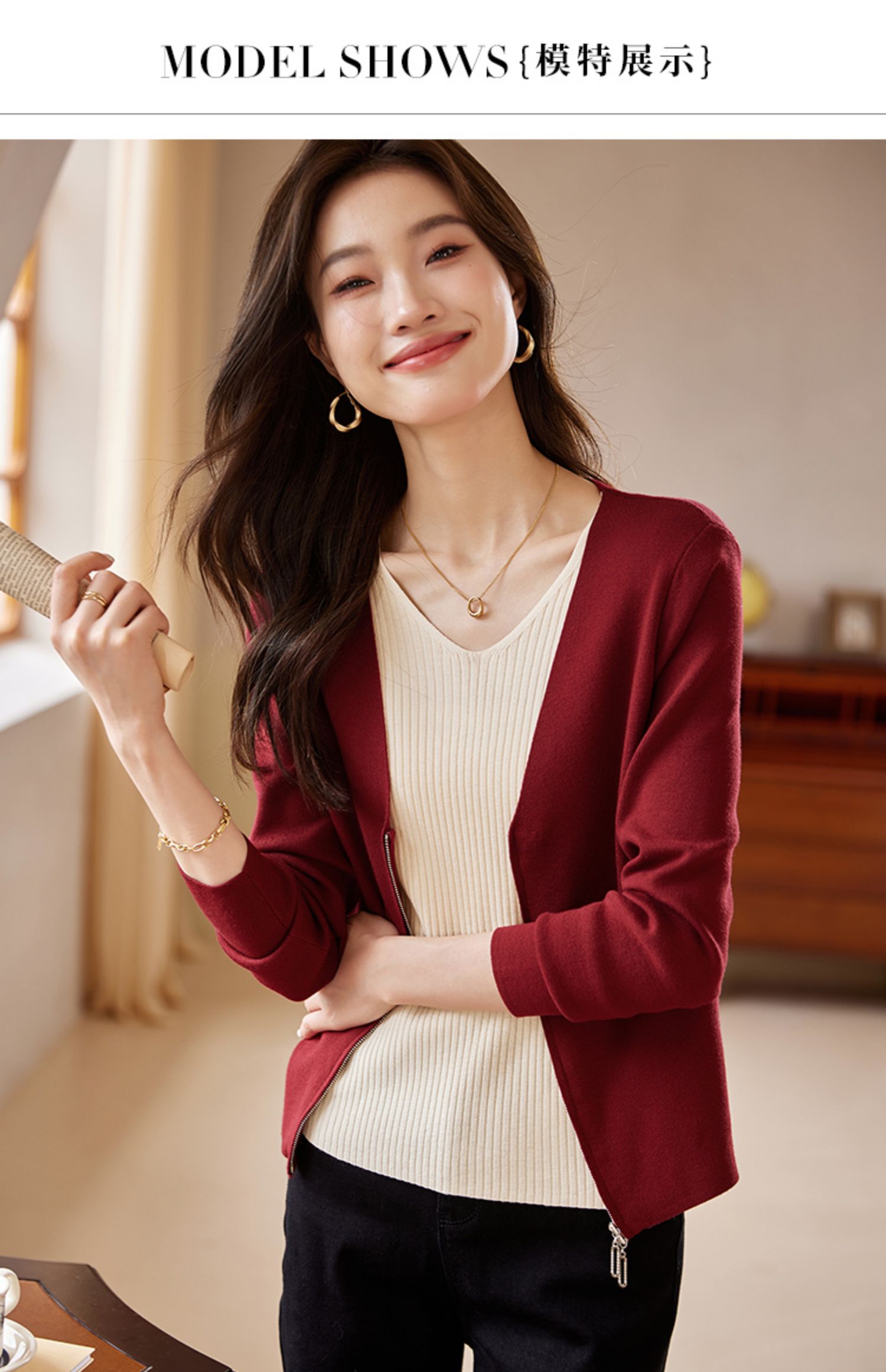【年终特卖】熙世界设计感撞色叠穿V领假两件复古红针织衫上衣女秋