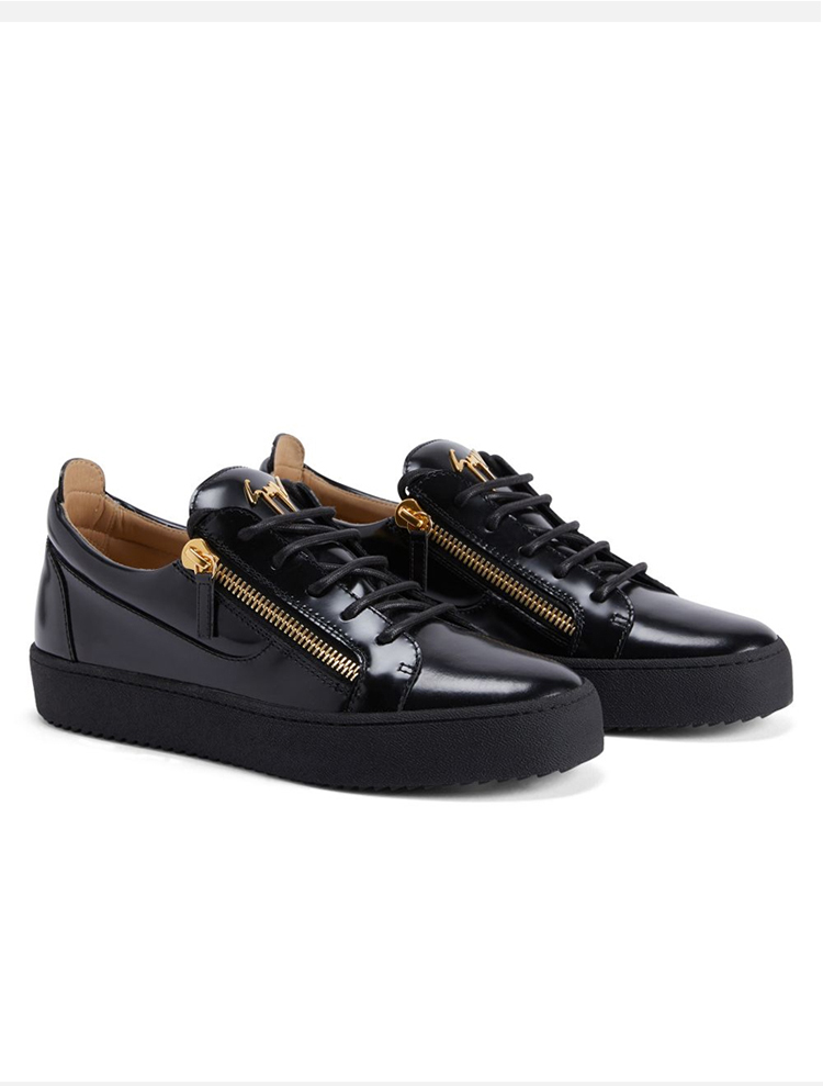 Giuseppe Zanotti 男士金属签名徽标低帮休闲运动鞋 黑色 RM40033001