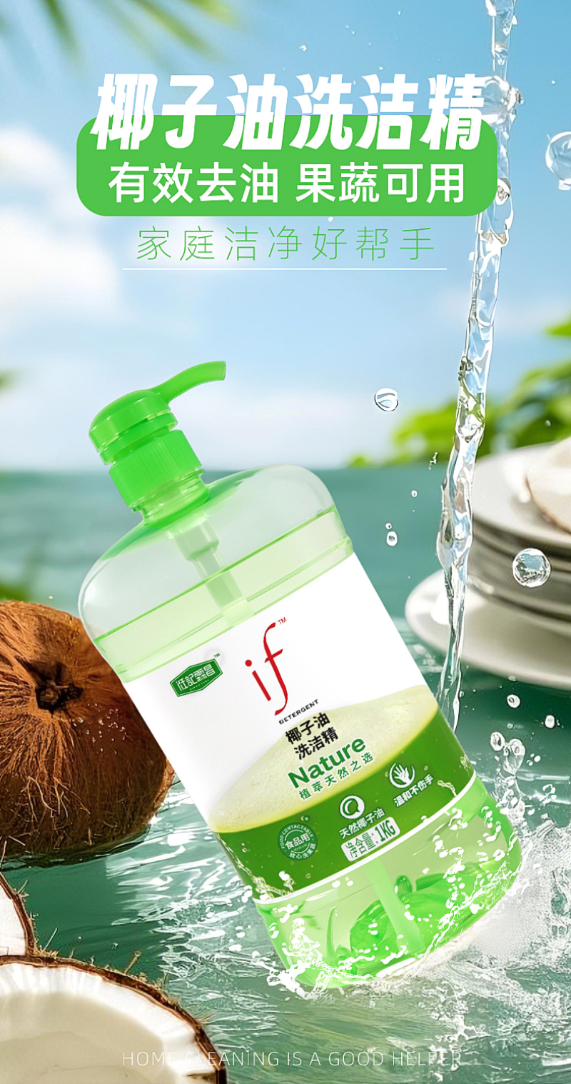 if椰子油/山茶洗洁精2瓶装共4斤带一个泵头【家清品牌福利专场】