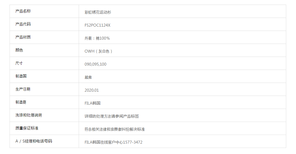 韩国F家斐乐韩国彩虹绣花运动衫卫衣FS2POC1124X_OWHJPY带授权招加盟代理