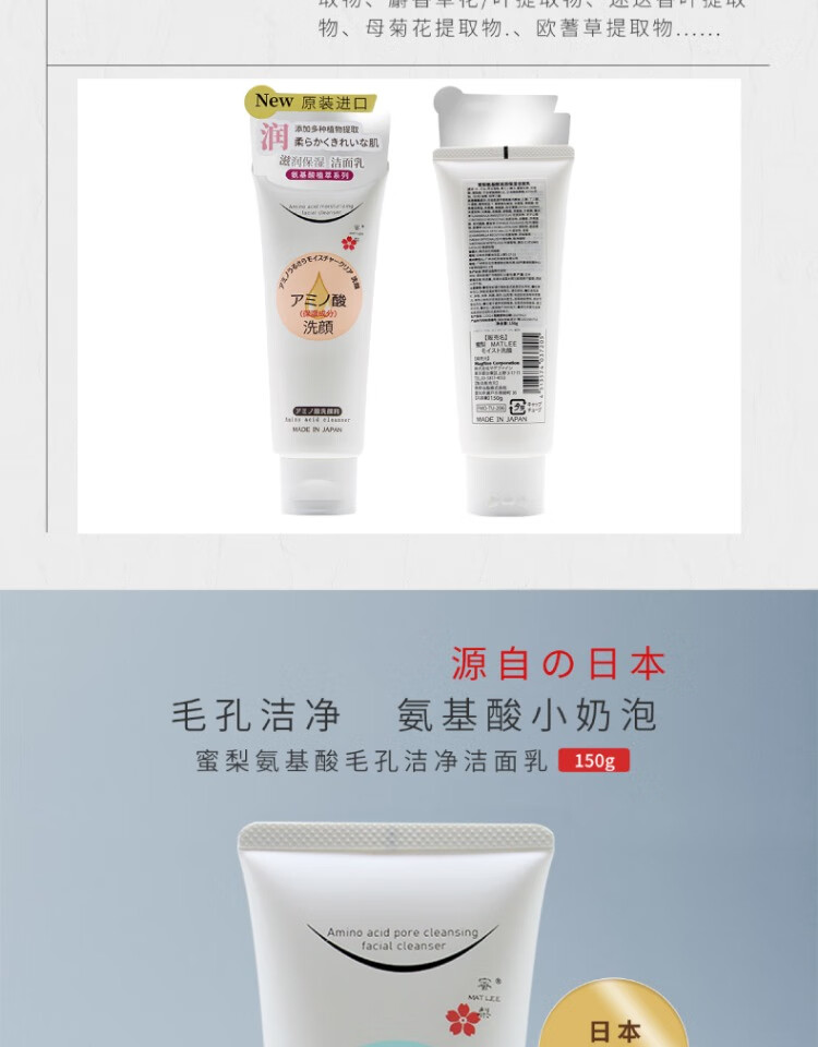 MAT LEE蜜梨 氨基酸洁面乳150g(毛孔洁净/滋润保湿)