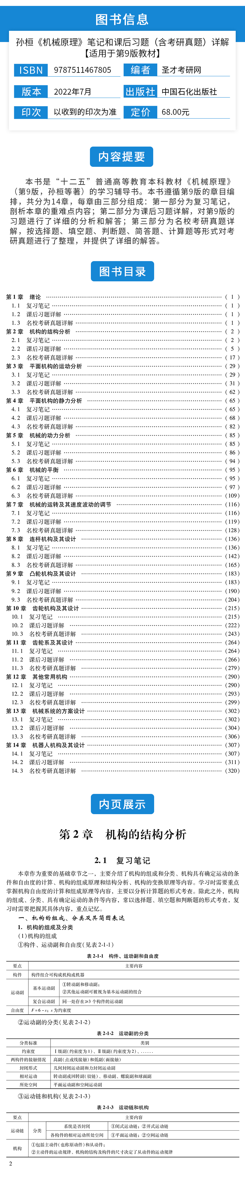 【旗舰店】孙桓《机械原理》笔记和课后习题(含考研真题)详解提供考研公共课和全国各高校理工类专业考研考博辅导班电子书题库