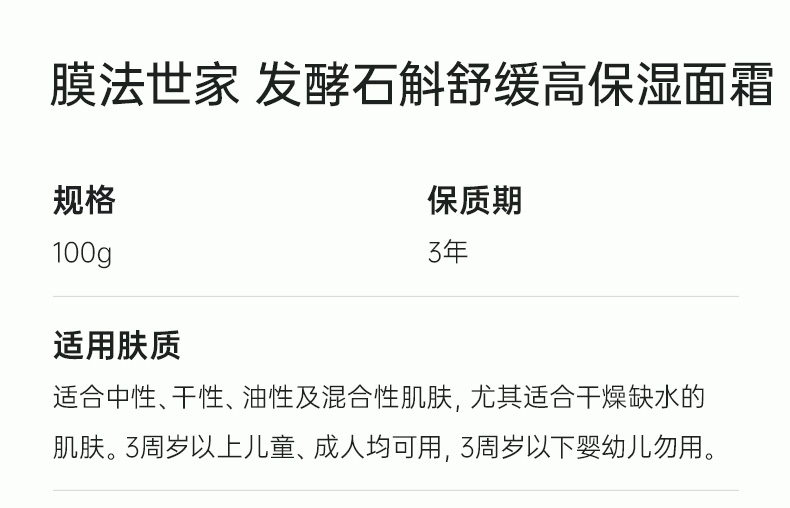 【舒缓高保湿】膜法世家发酵石斛舒缓高保湿面霜100g