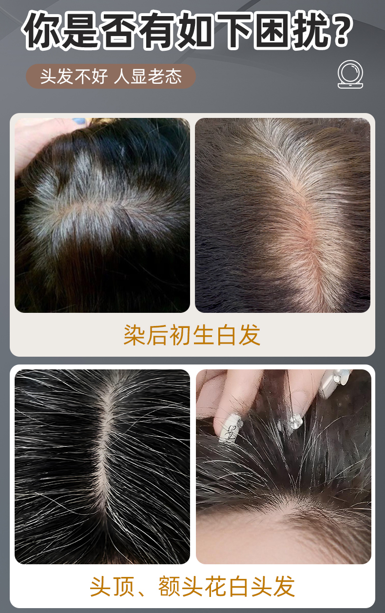1、摩擦取粉,盖白发可以多取些粉,涂抹按压在白发处,同时发量倍增反差感会很明显。