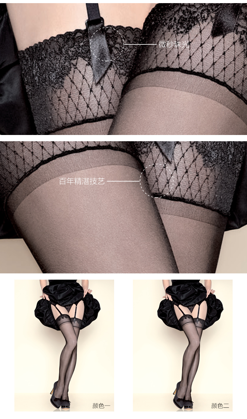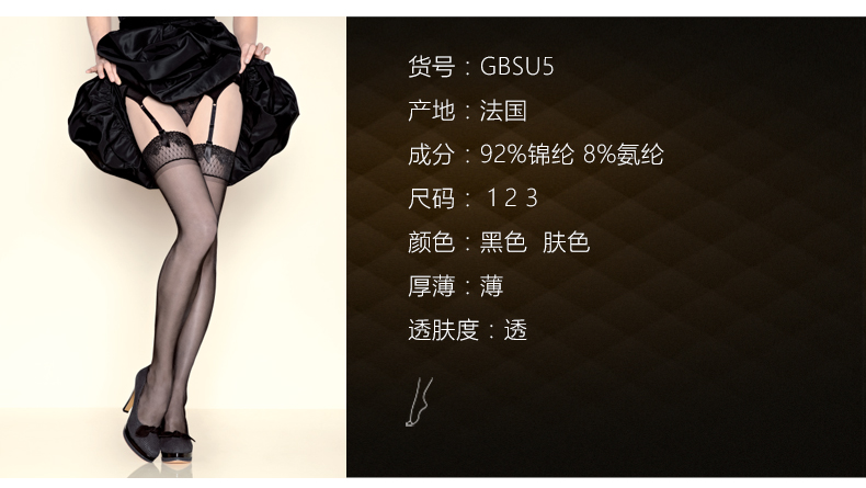 Gerbe格伯 100%法国原装进口女士大腿袜 微细珠光蕾丝袜GBSU5 18d