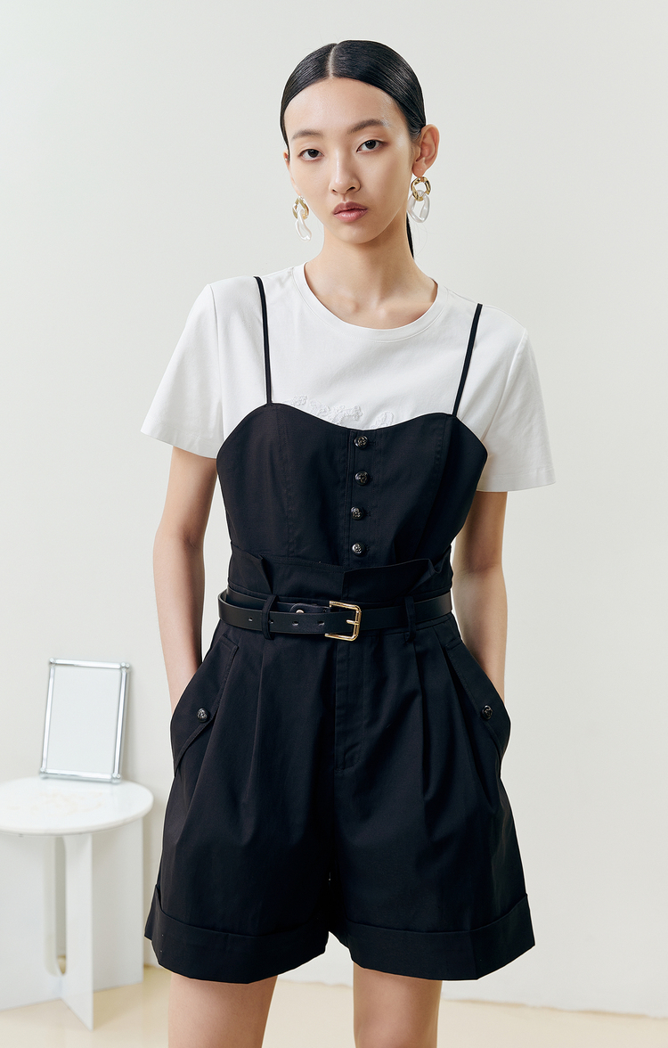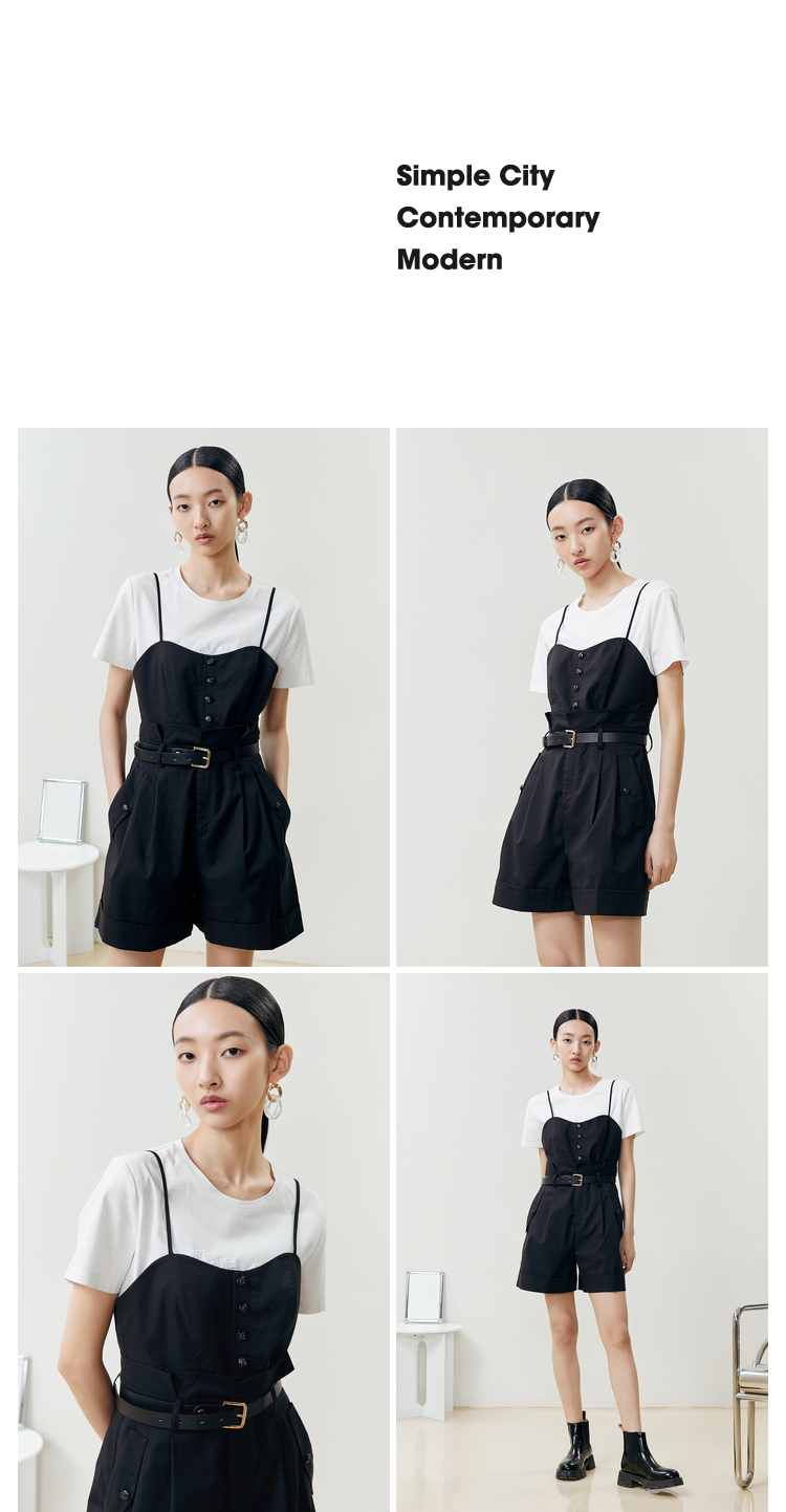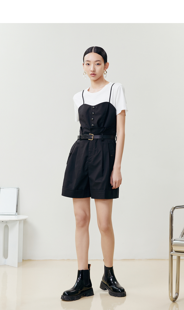 NEELLY纳俪商场同款吊带连体裤女收腰高级感时尚百搭夏季短裤休闲N22042Q01060