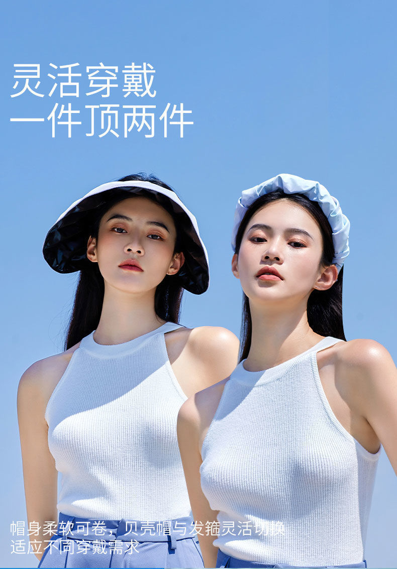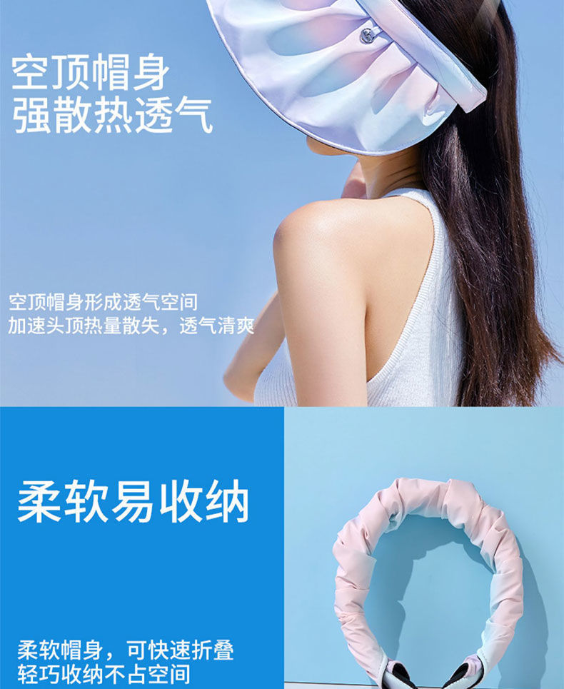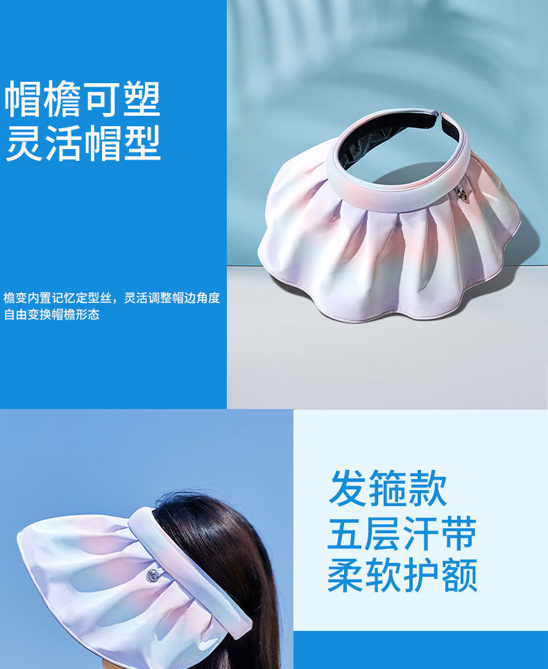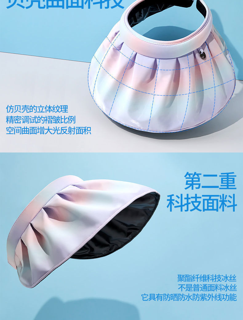 彩虹空顶贝壳帽子女夏季遮阳帽渐变色大檐太阳帽sjmh46