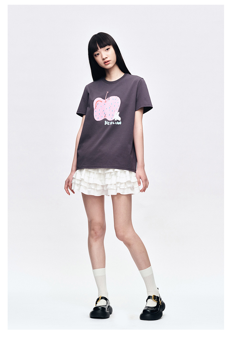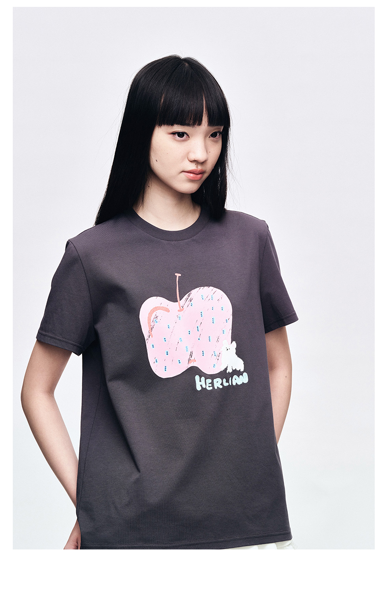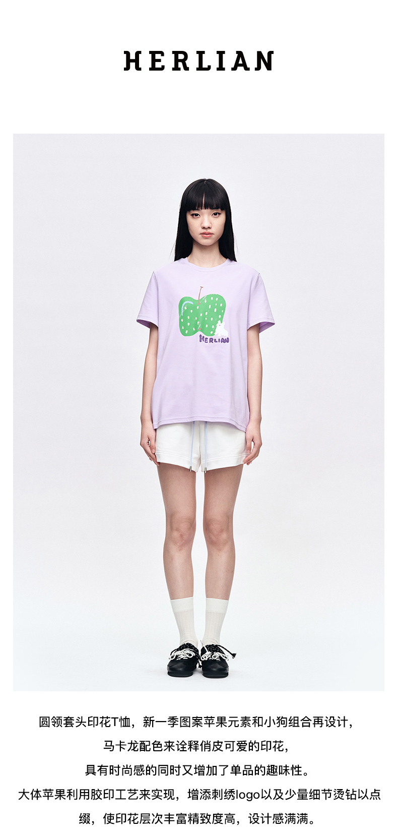 Herlian2025年夏季新品女士一颗苹果小狗图案印花TEE