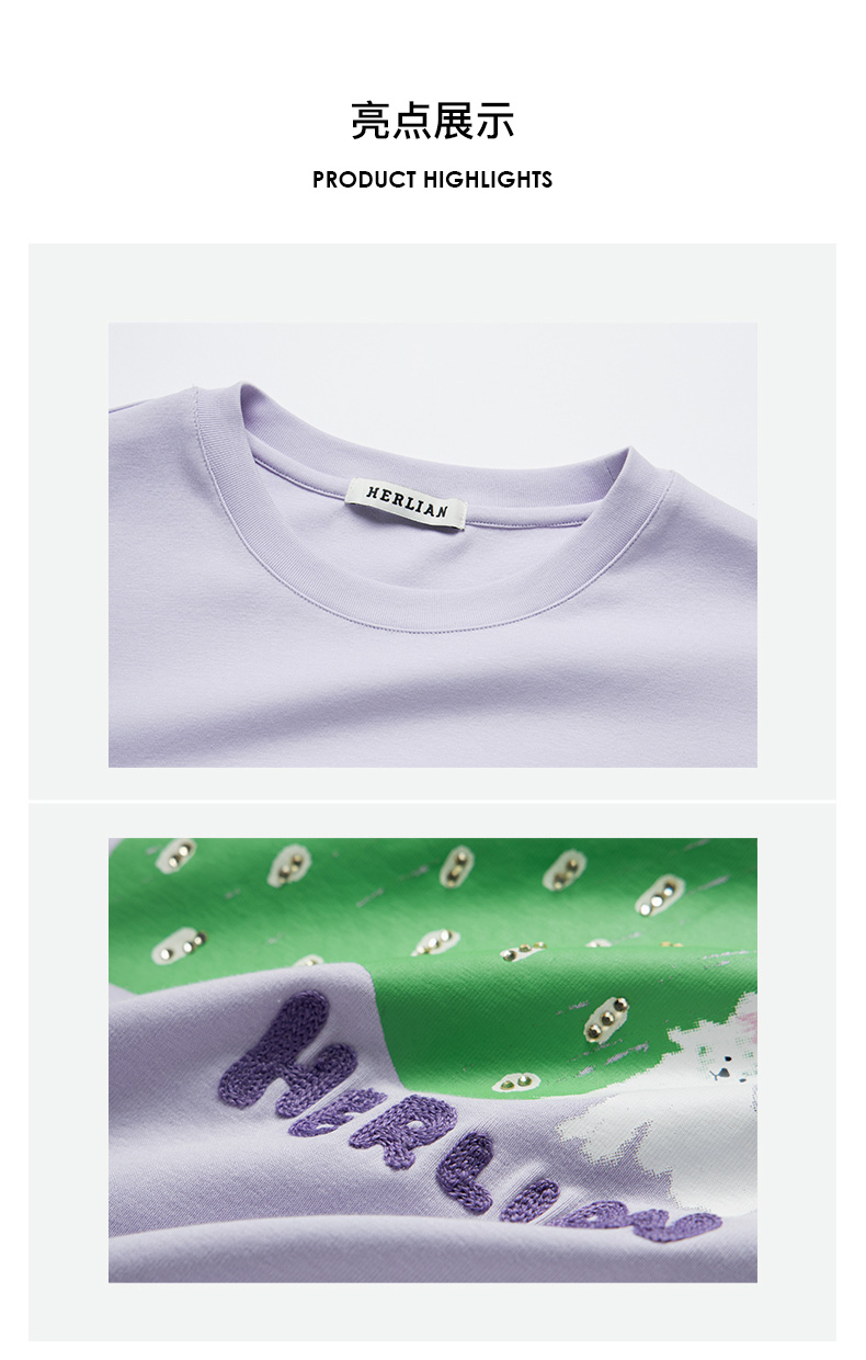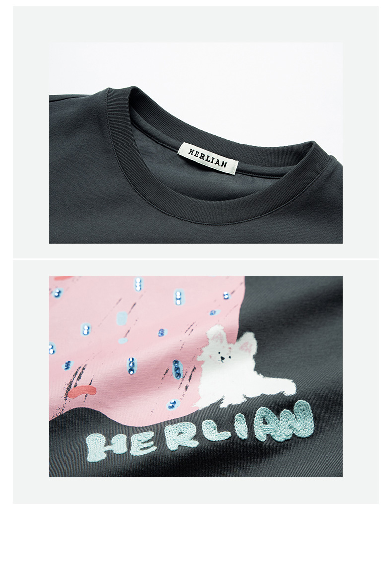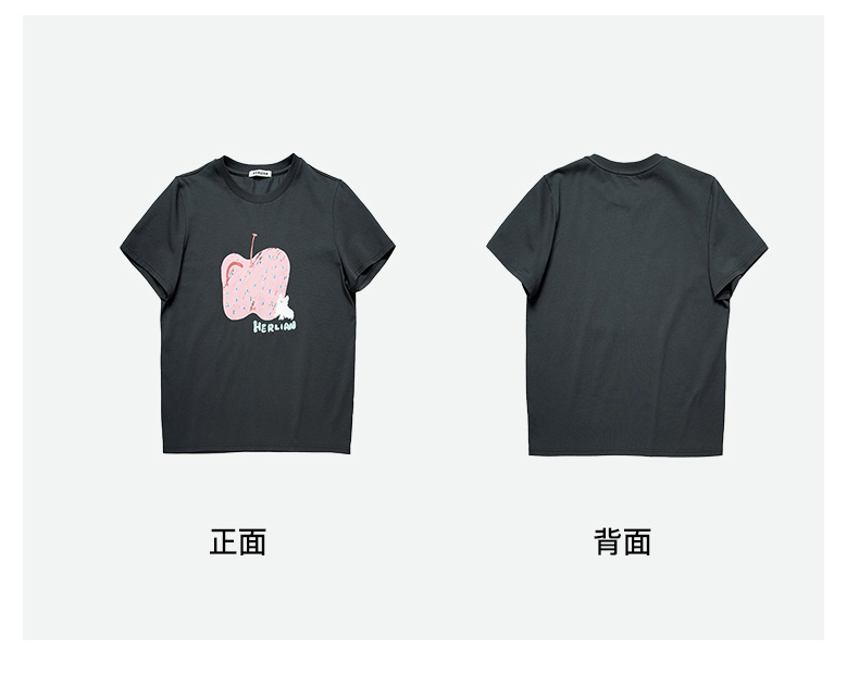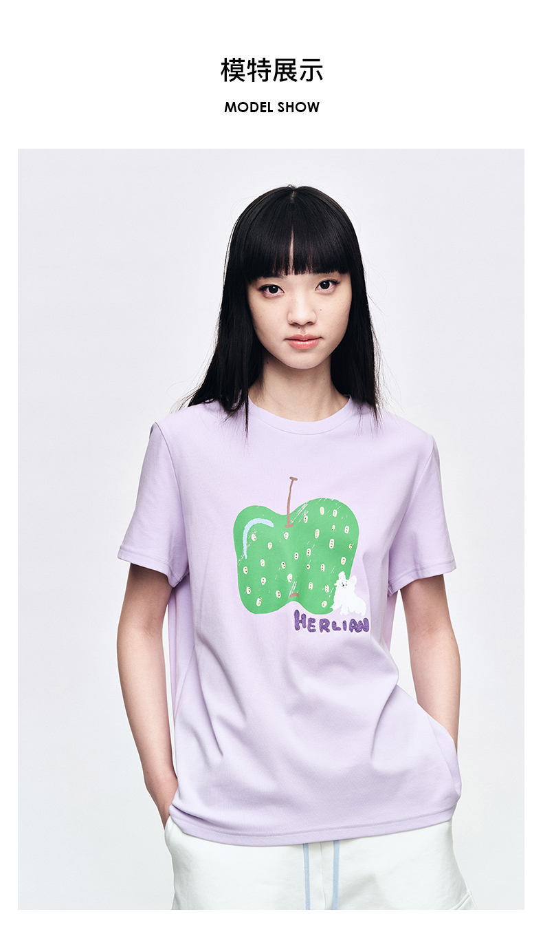 Herlian2025年夏季新品女士一颗苹果小狗图案印花TEE