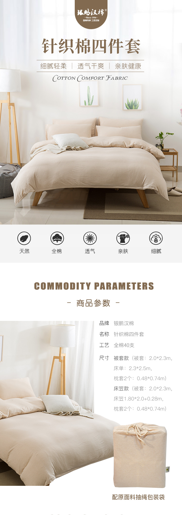 【武汉】银鹏汉棉针织全棉四件套床笠/床单款(配原面料抽绳包装袋)