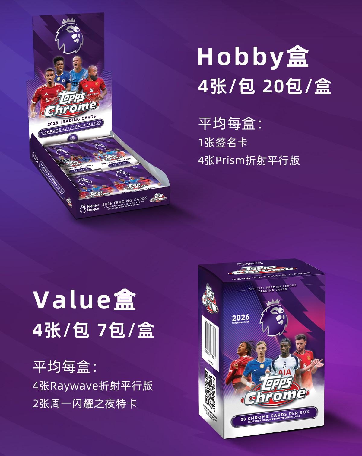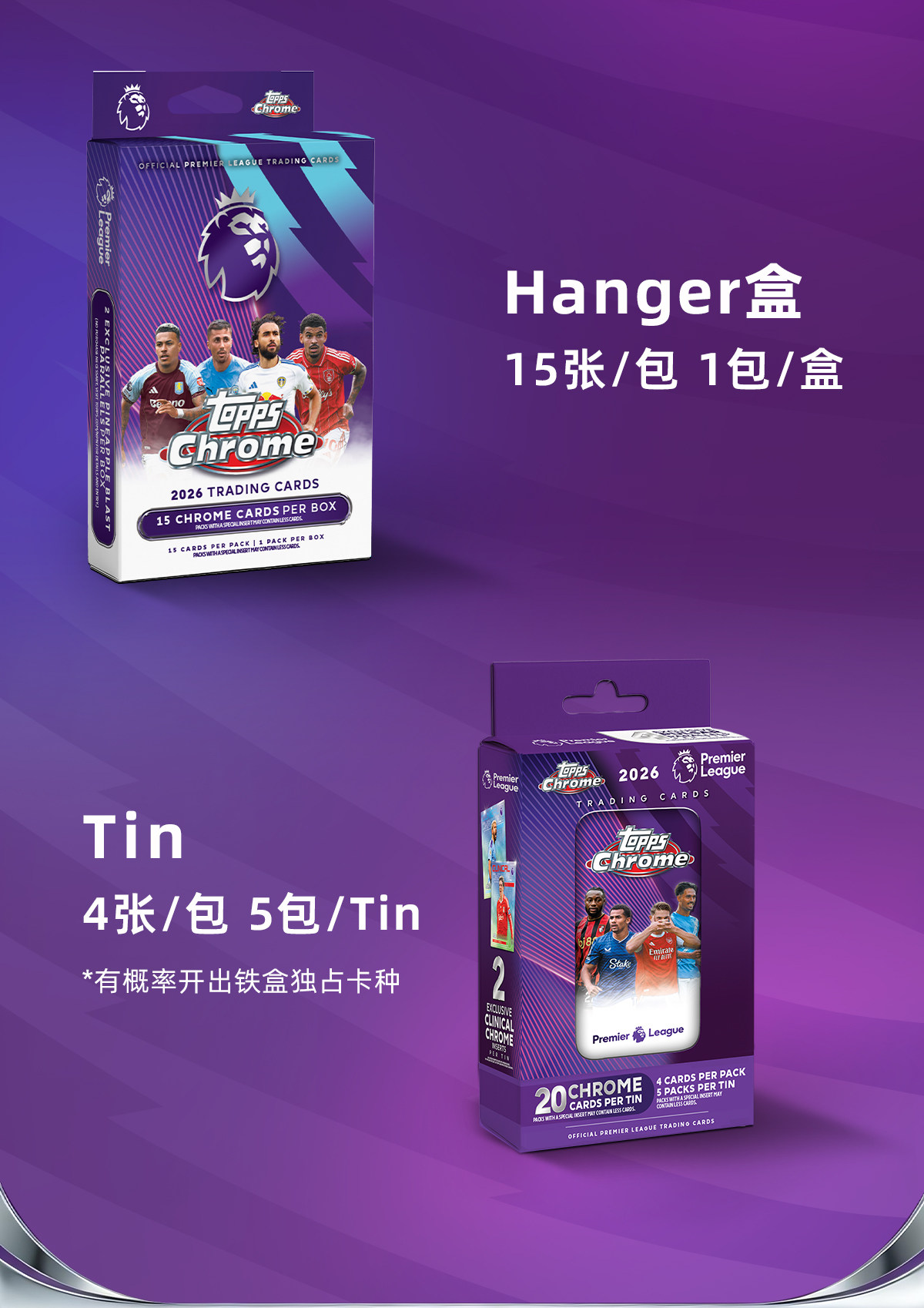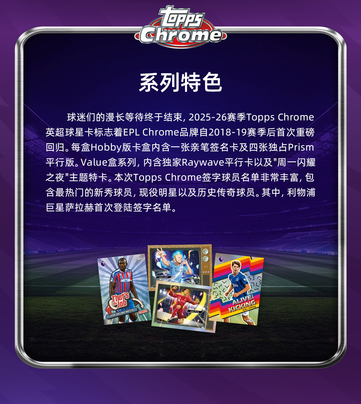 Topps Chrome 2025-26 足球英超Value/Tin/Hanger系列球星卡