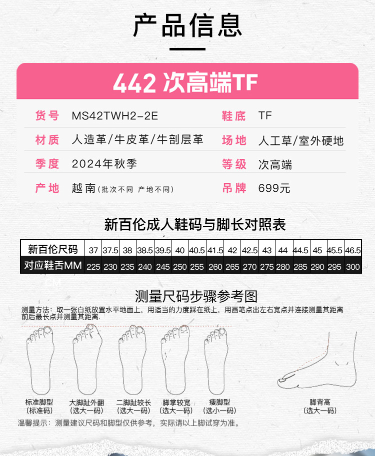小李子NEWBALANCE新百伦442次高端TF碎钉牛皮成人足球鞋男MS42TWH2-2E