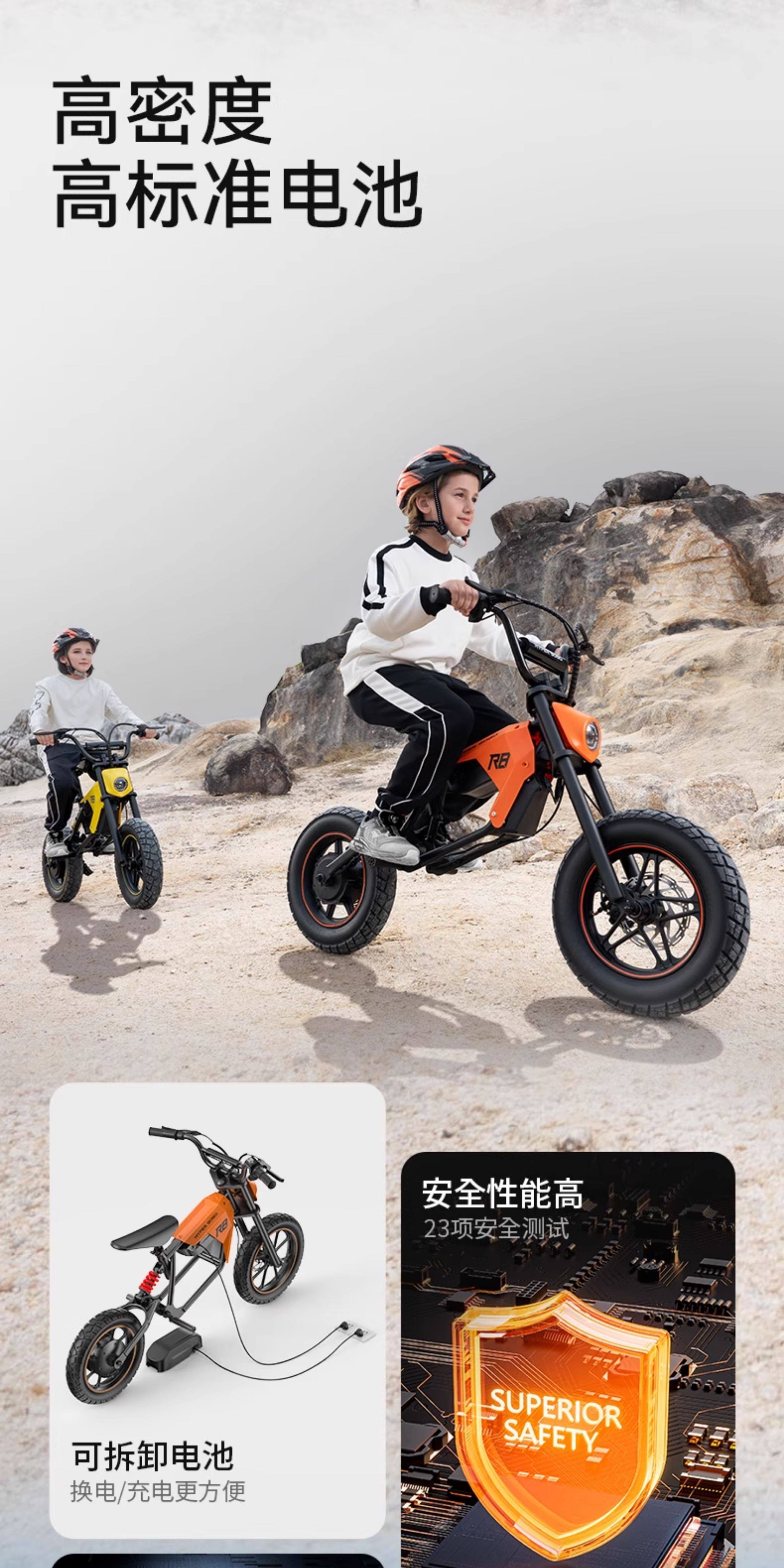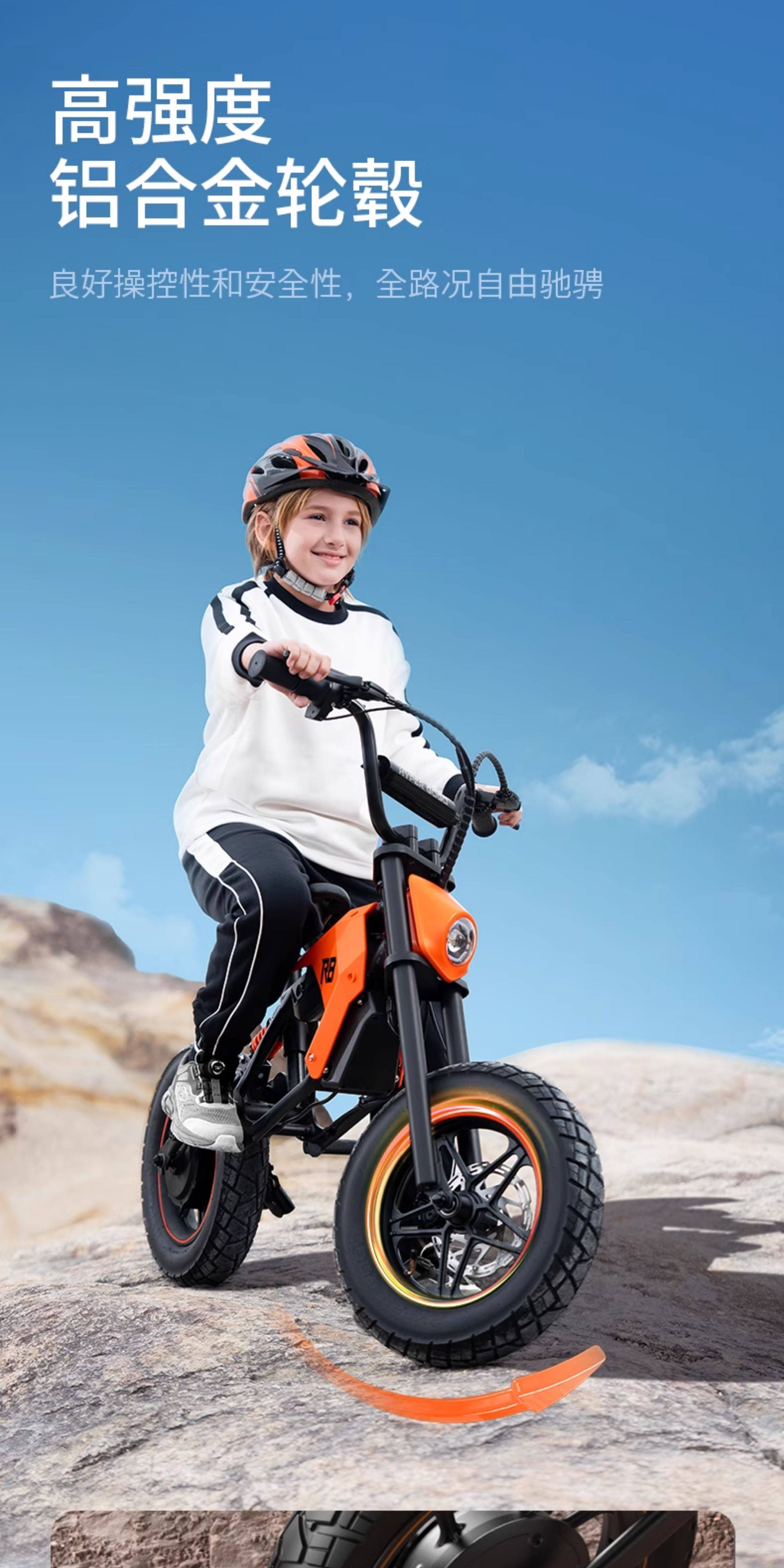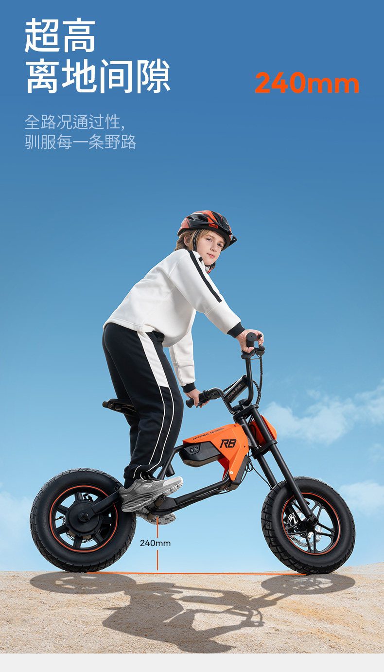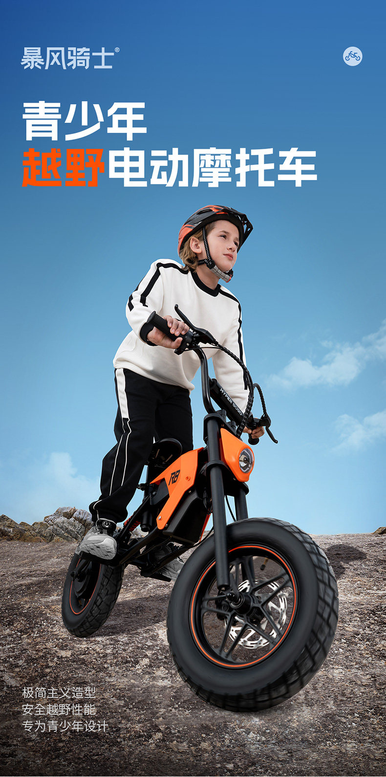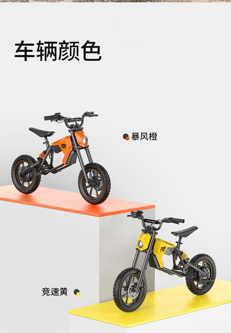 暴风骑士 儿童电动摩托车 R8 越野款 超轻便携小型代步电池助力越野风青少年电动车