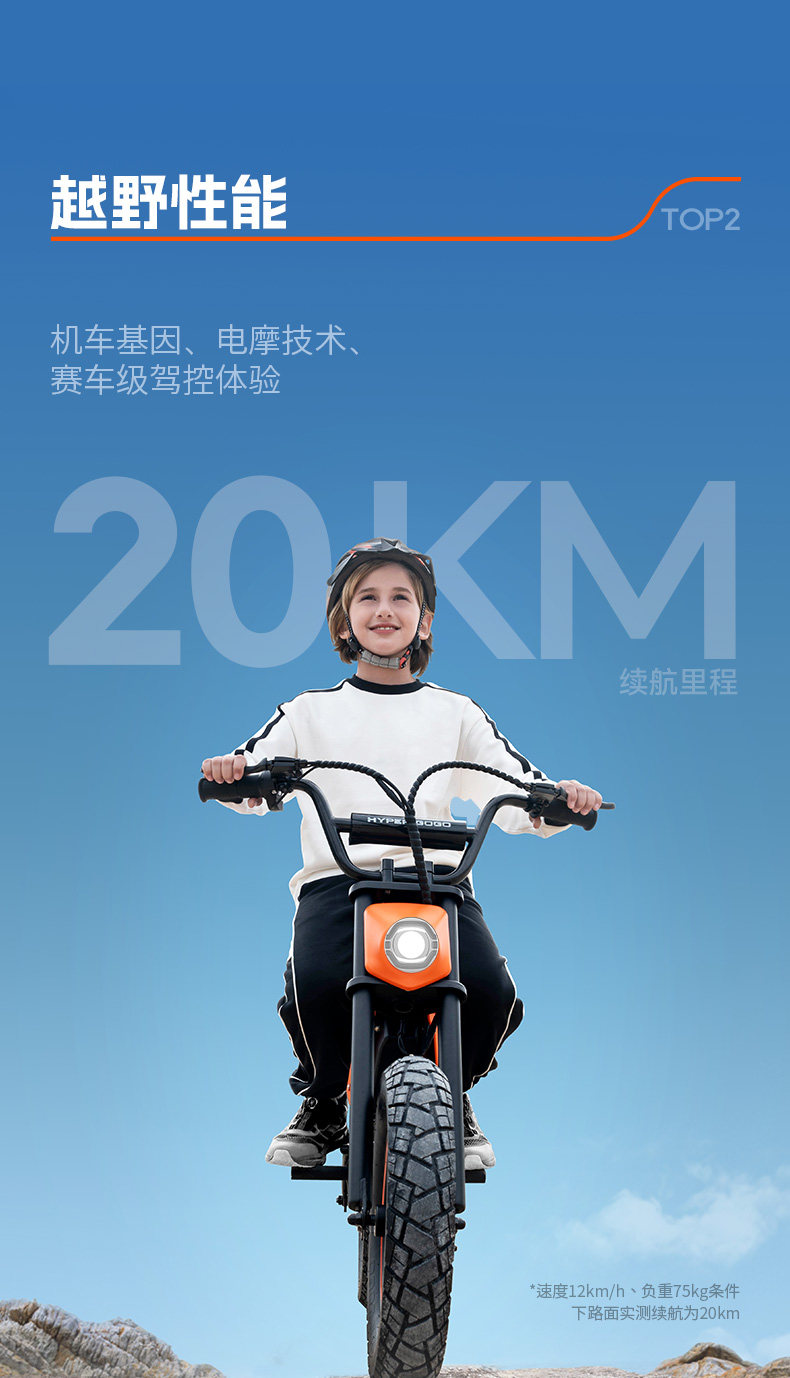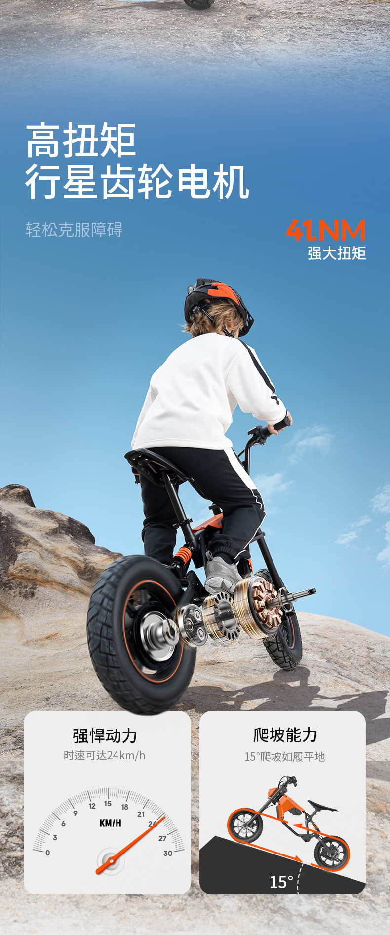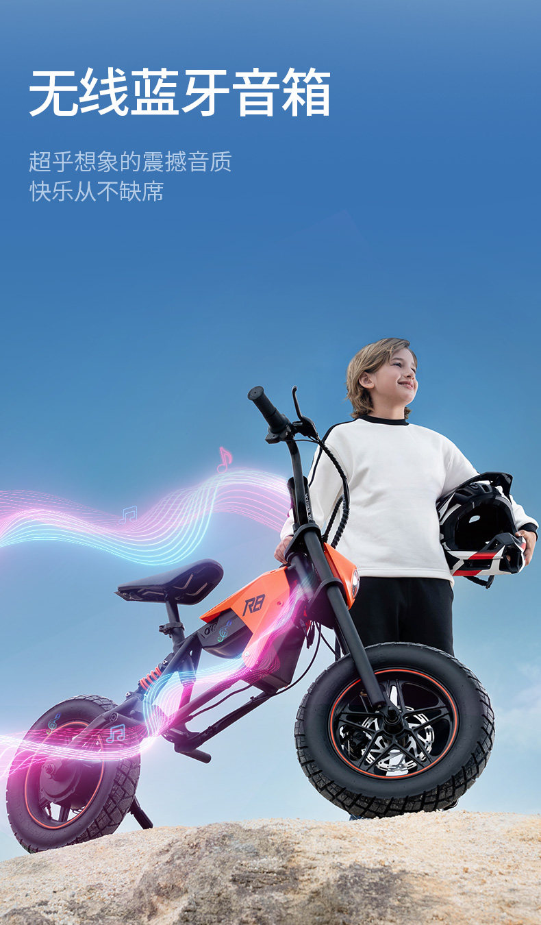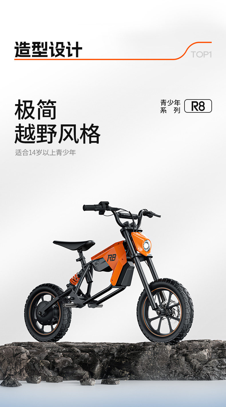 暴风骑士 儿童电动摩托车 R8 越野款 超轻便携小型代步电池助力越野风青少年电动车
