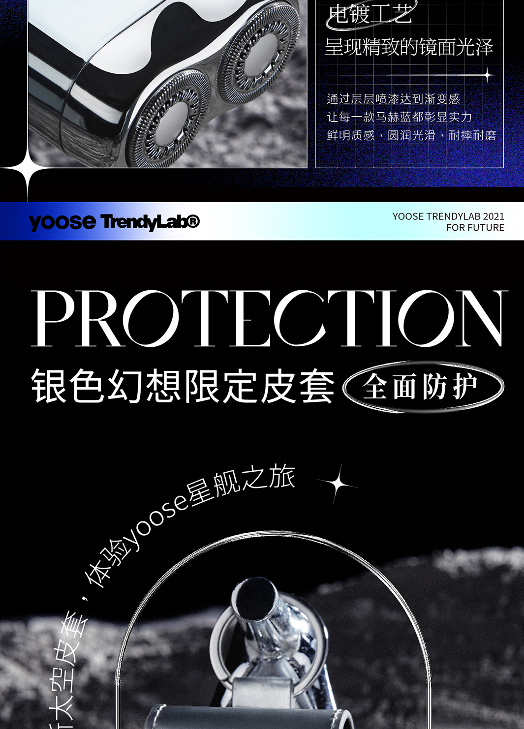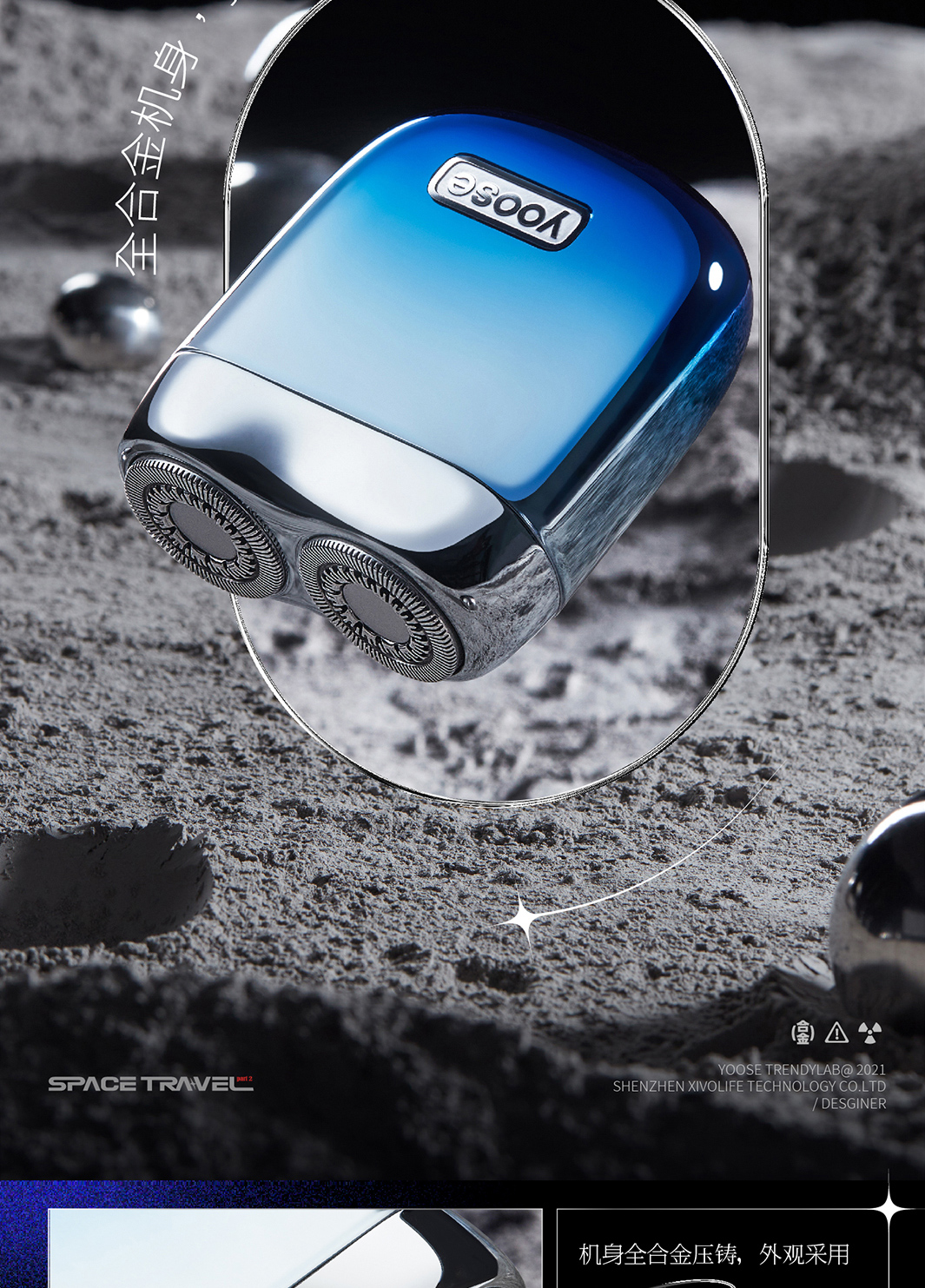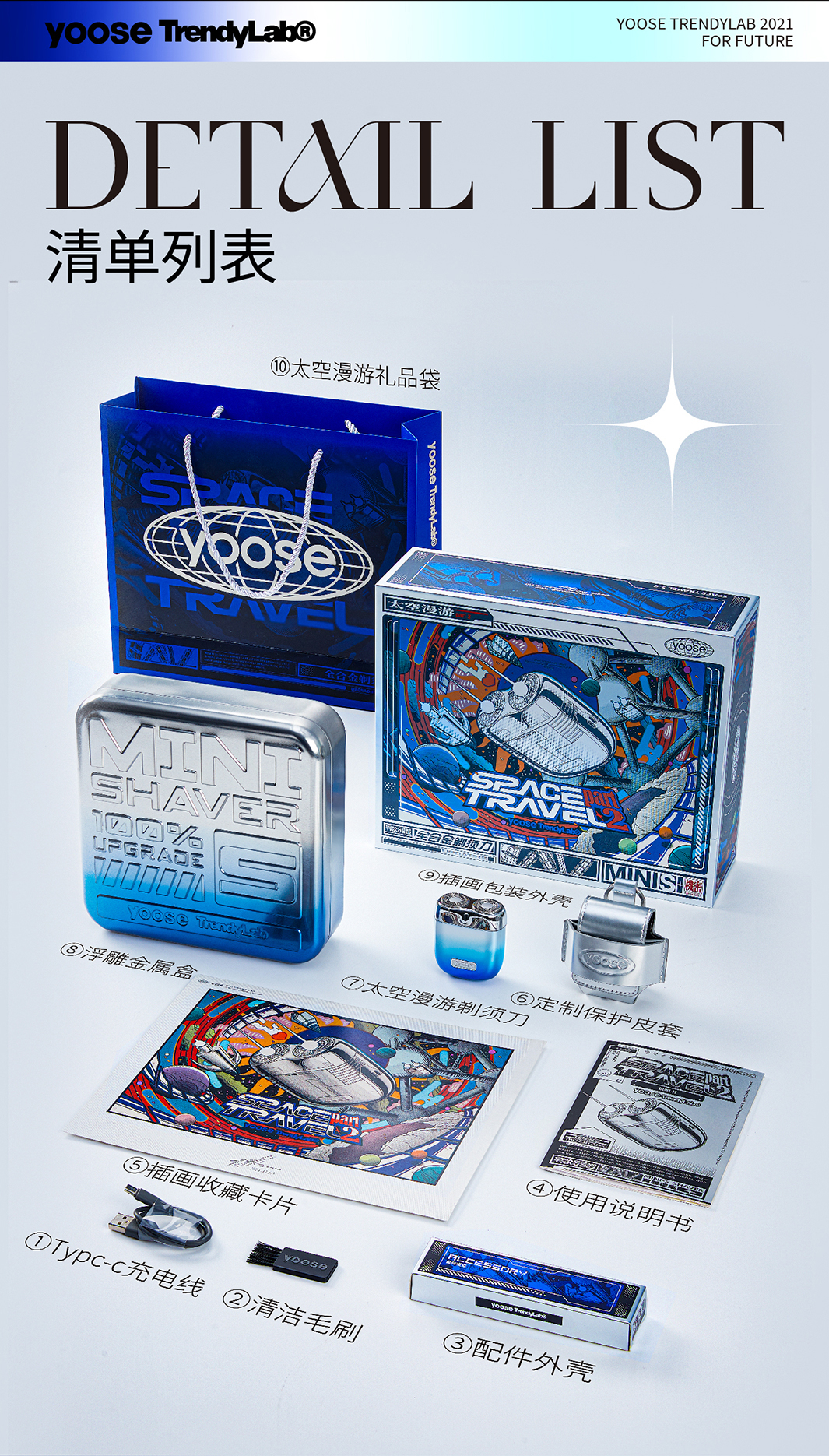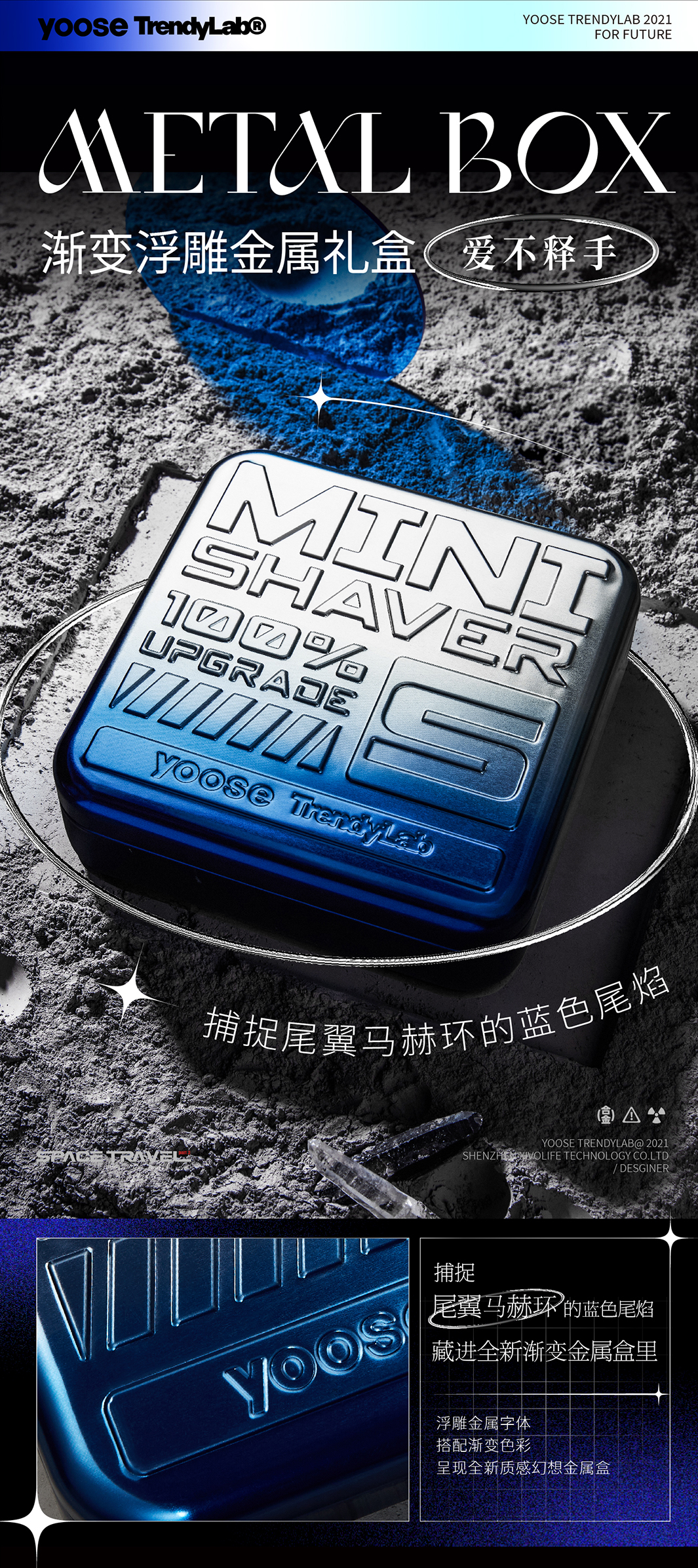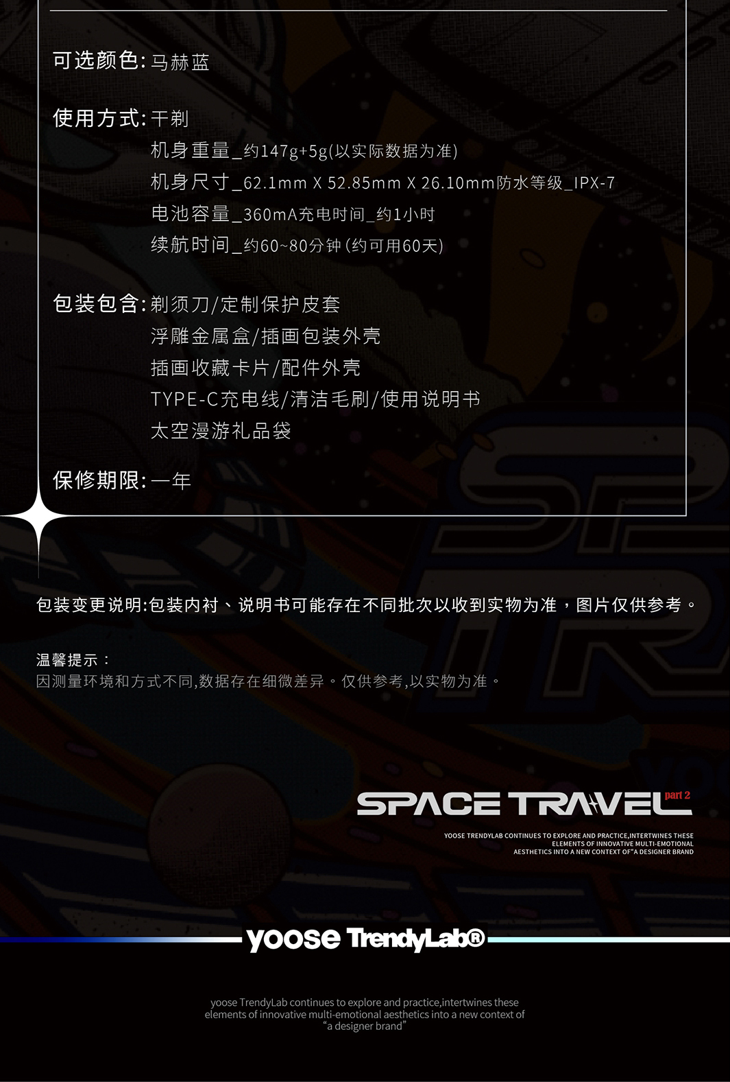 Yoose/有色 太空漫游礼盒剃须刀 渐变蓝 合金机身 男士差旅生日礼物送男友 胡须刀礼盒 太空漫游款