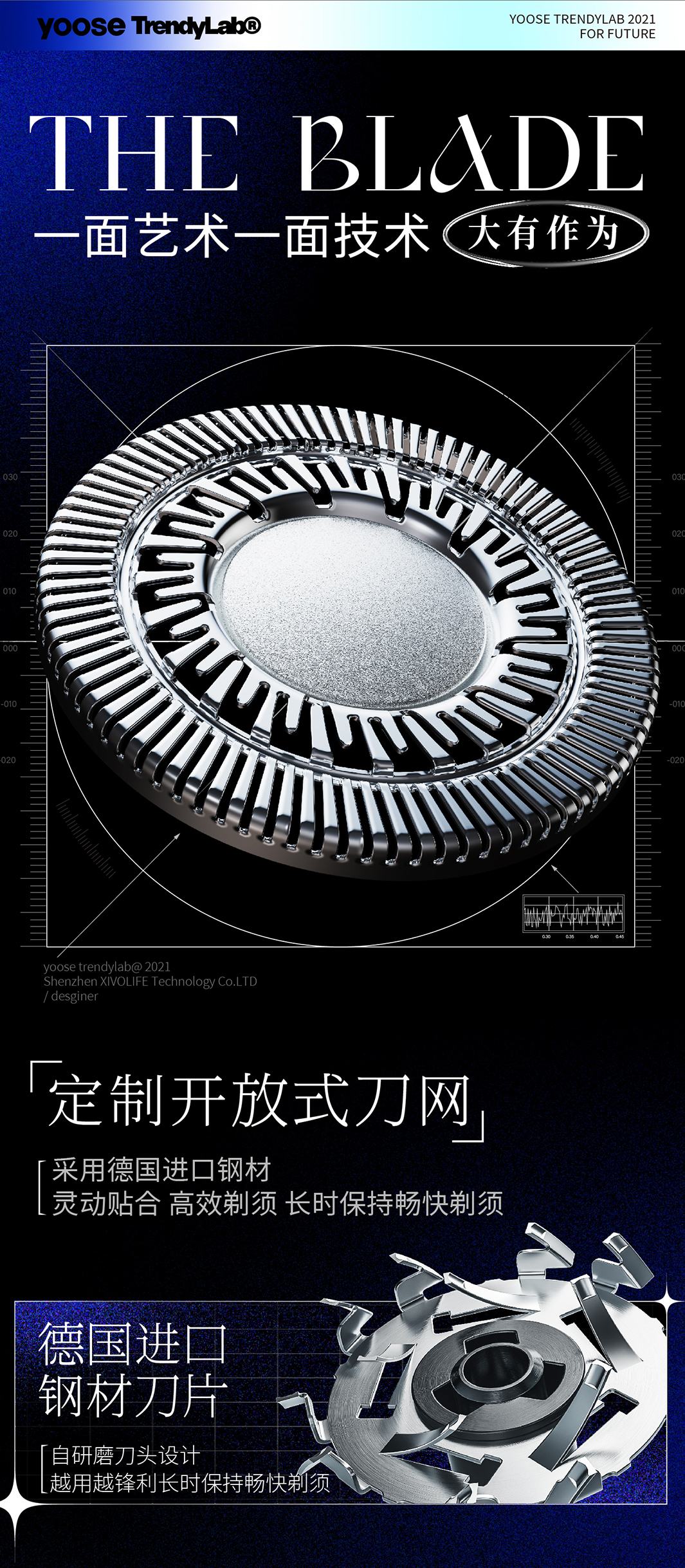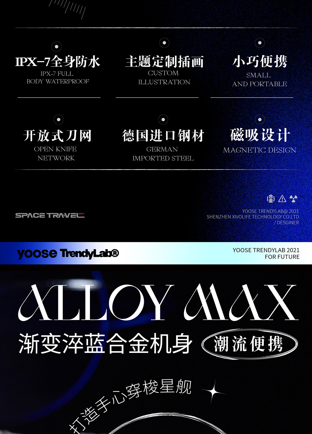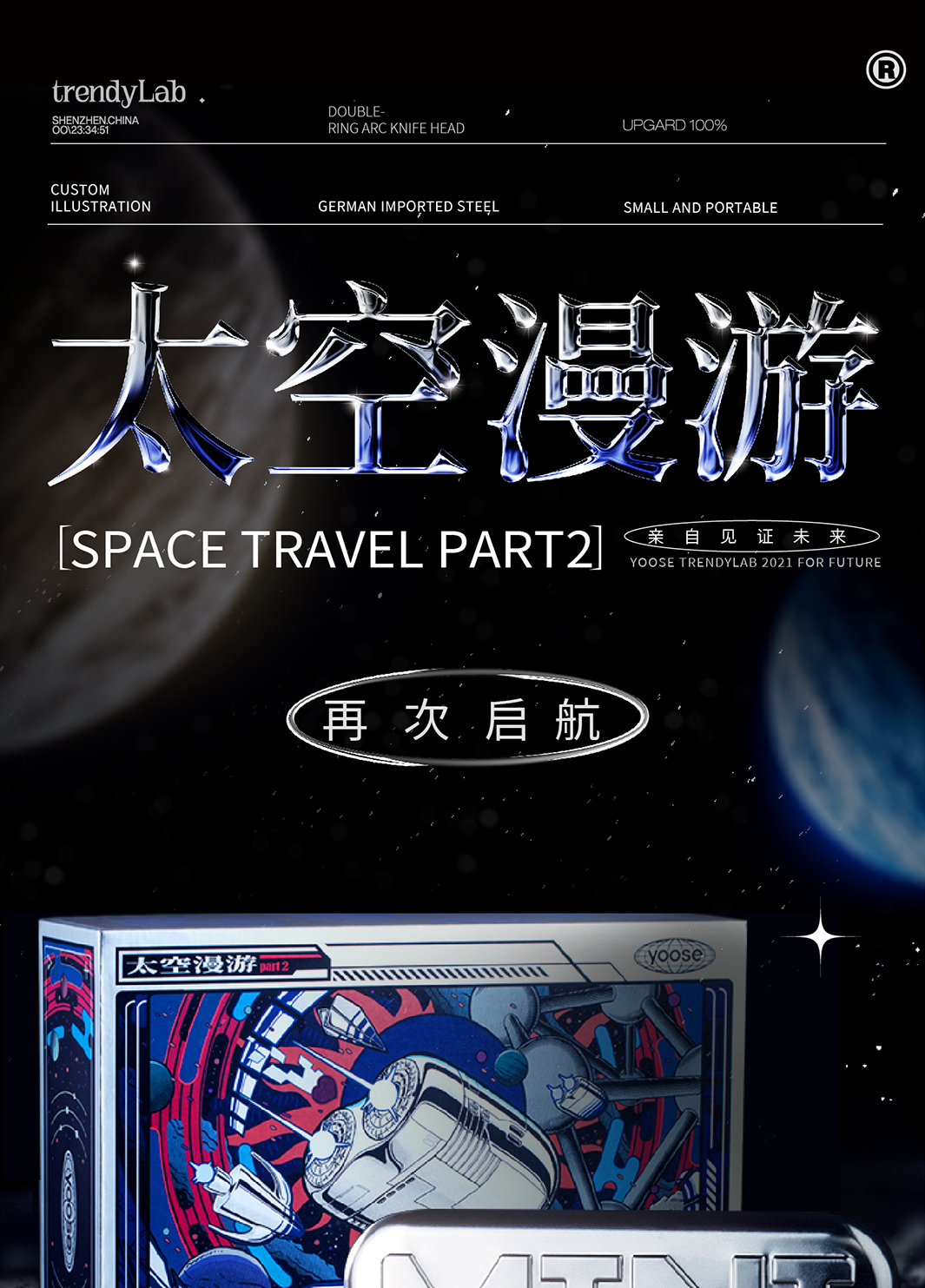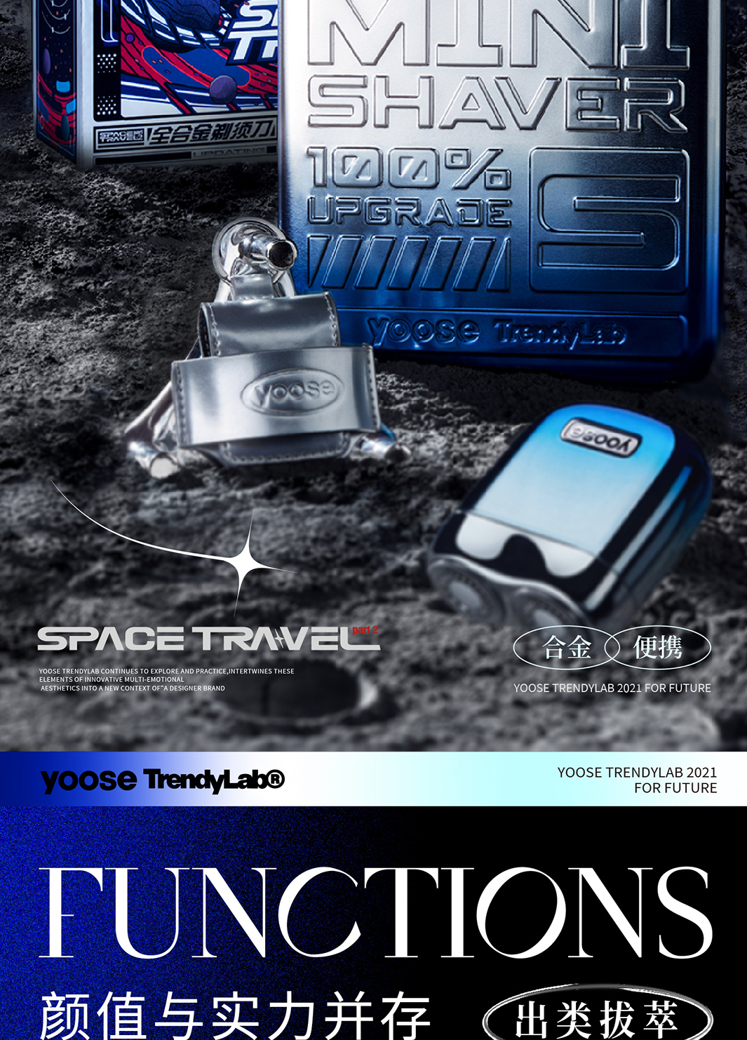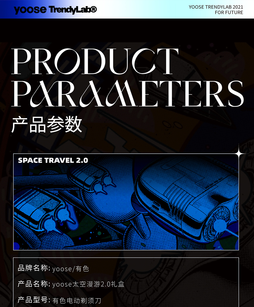Yoose/有色 太空漫游礼盒剃须刀 渐变蓝 合金机身 男士差旅生日礼物送男友 胡须刀礼盒 太空漫游款
