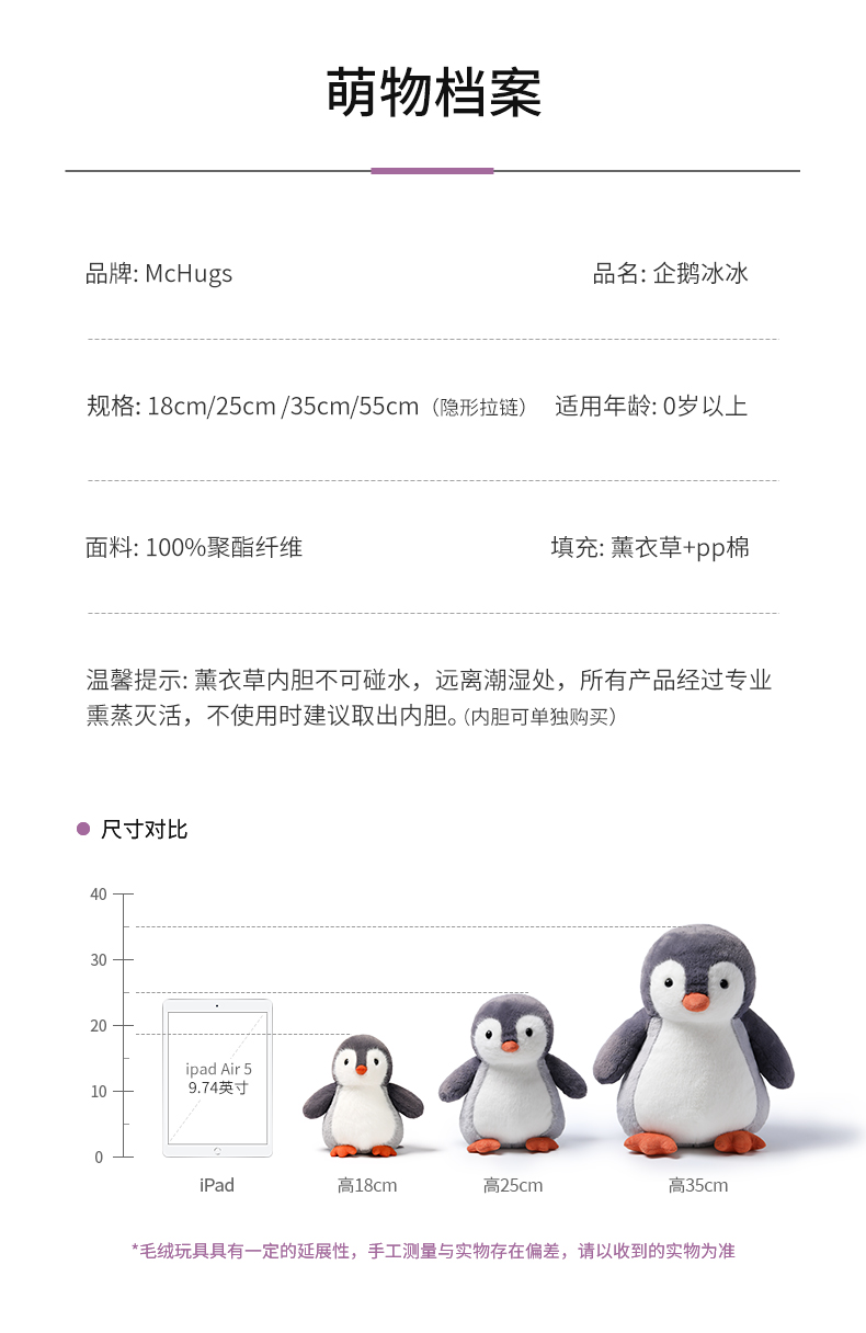McHugs 企鹅冰冰36CM 毕业礼物玩偶睡觉抱香薰毛绒玩具娃娃公仔生日礼物