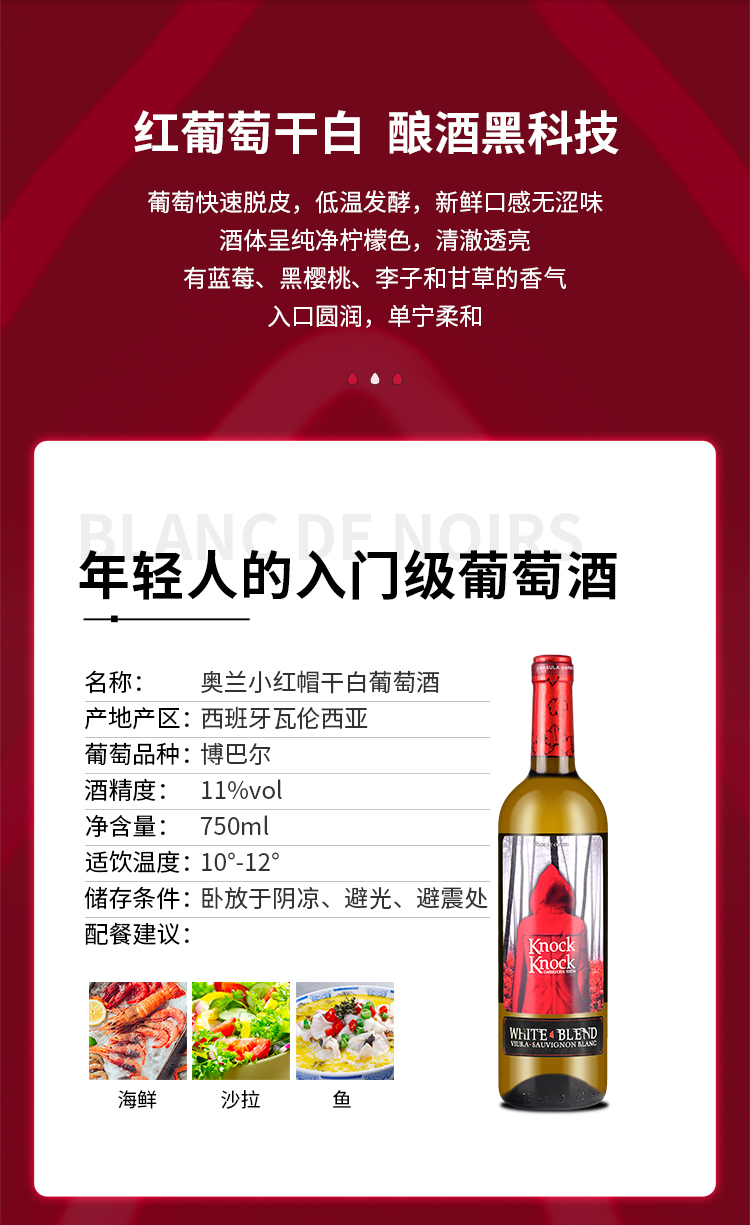 奥兰小红帽干白葡萄酒750ML,3瓶/套