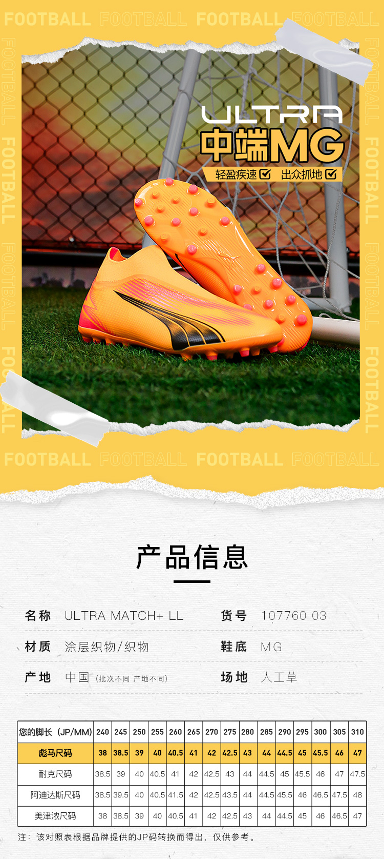 小李子PUMA彪马ULTRA MATCH+MG短钉中端成人足球鞋男107760 03