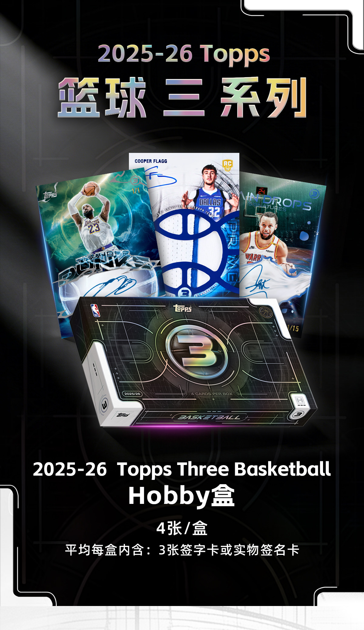 Topps NBA 2025/26 Three Hobby 篮球球星卡