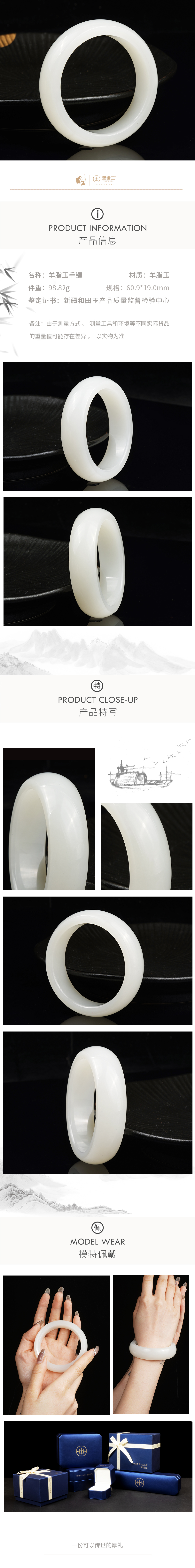 新疆国玉盟世玉和田玉羊脂玉手镯圈口60.9【带证书·顺丰物流】