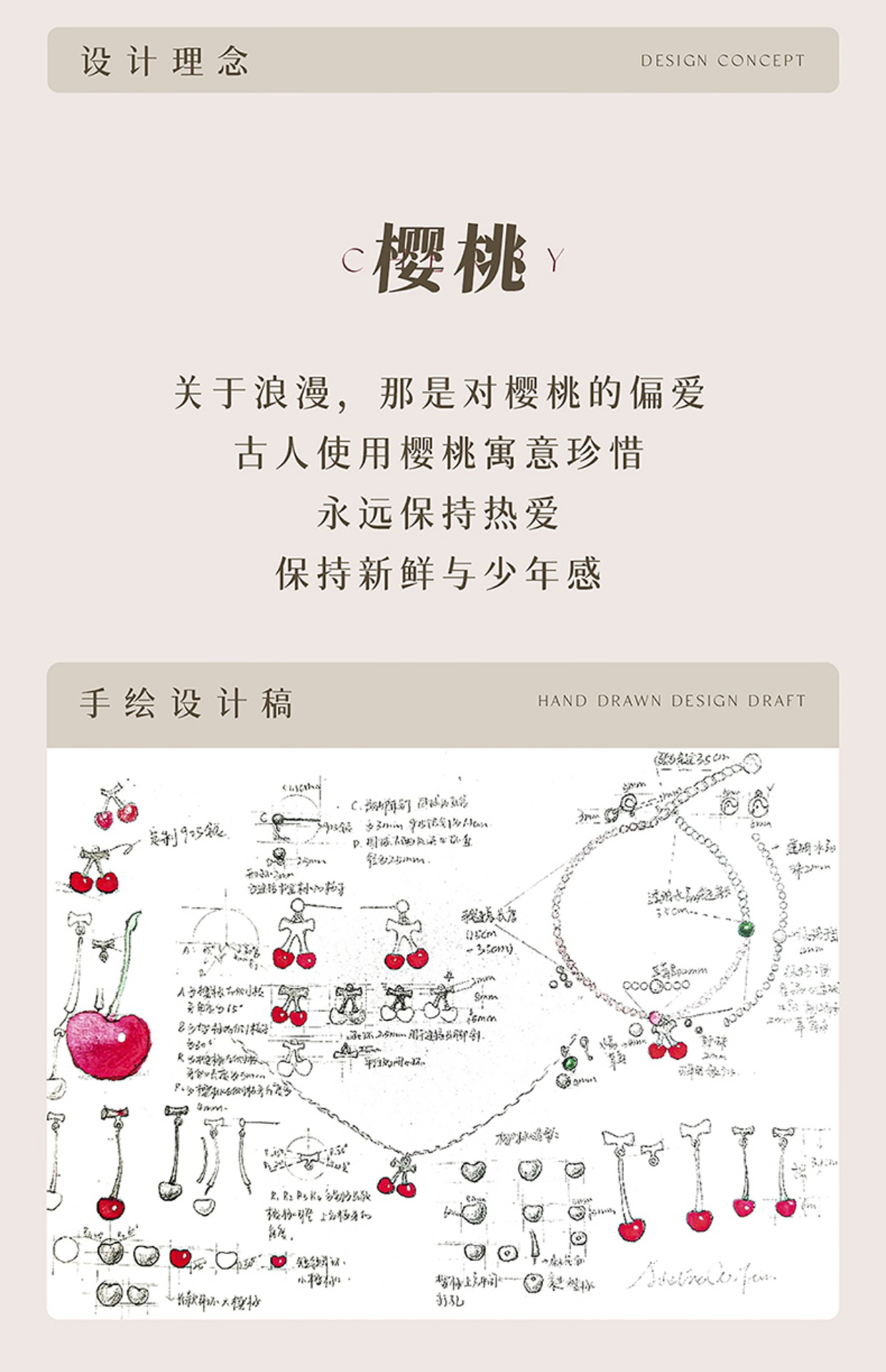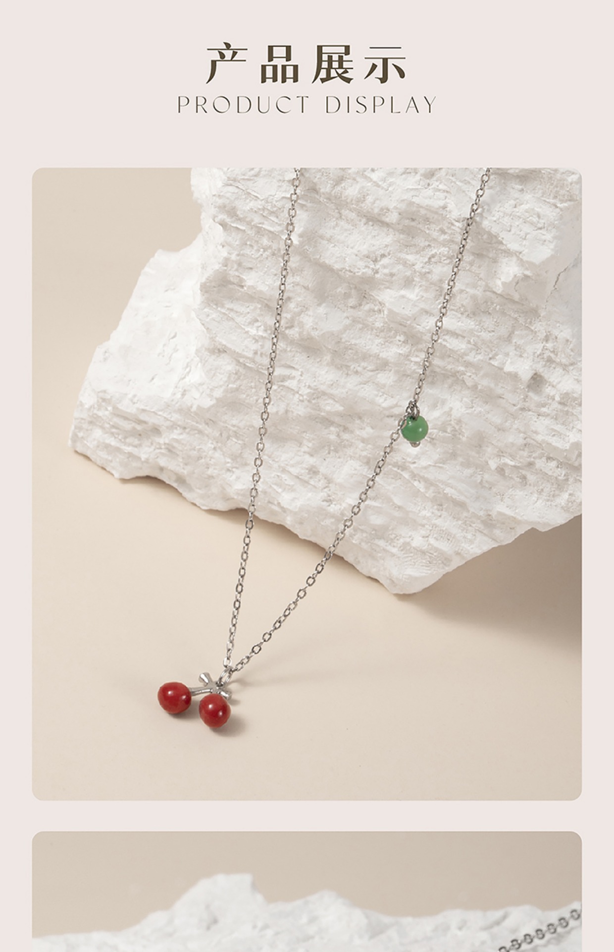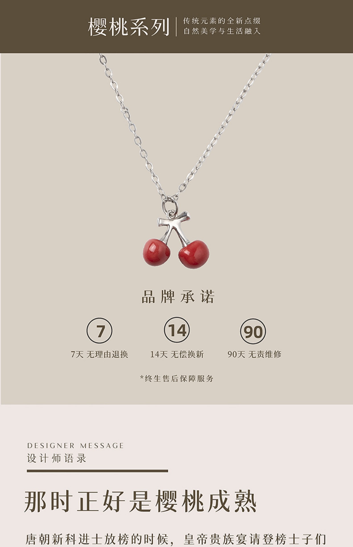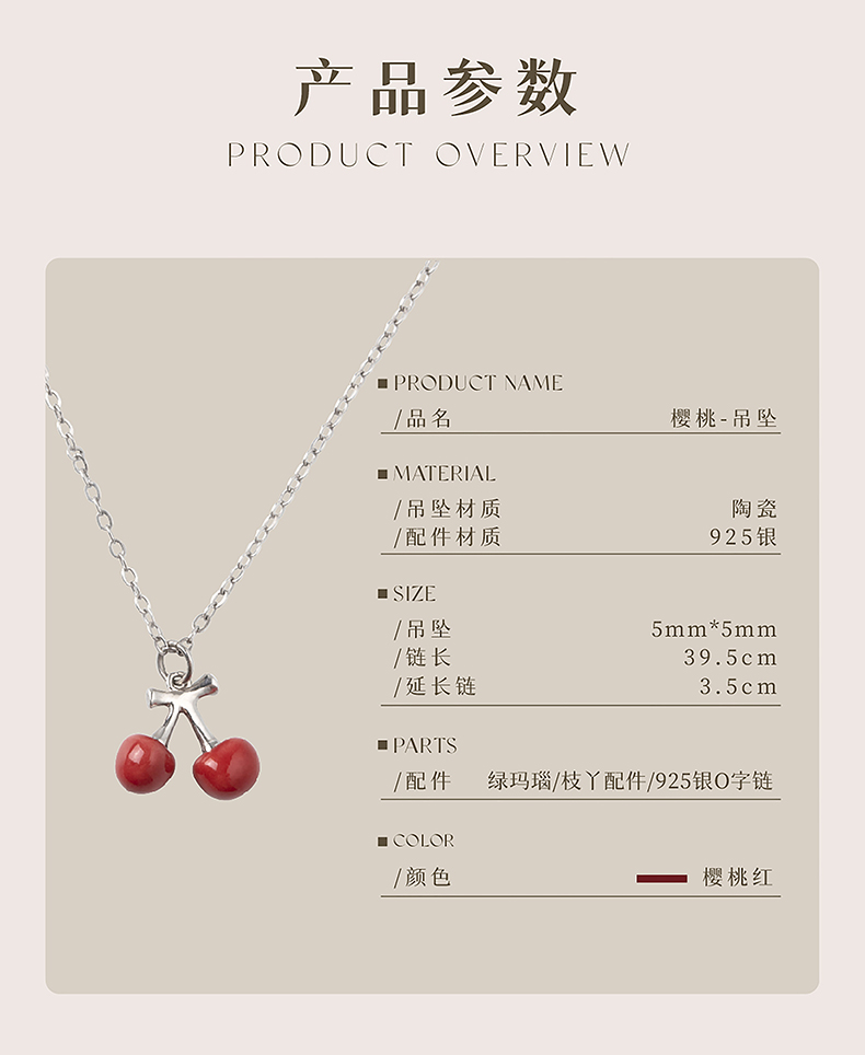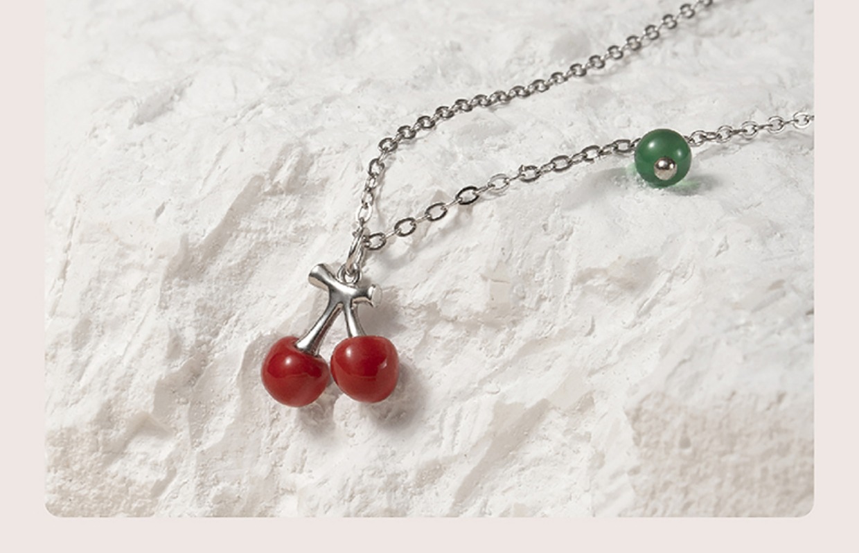 凡华造物樱桃项链女银925小众设计感吊坠轻奢情侣项链生日礼物樱桃925银吊坠